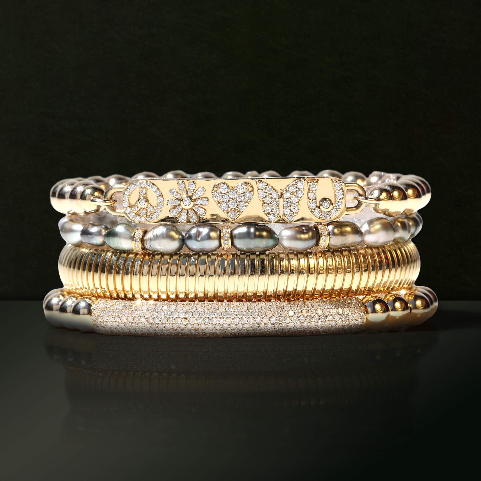 Rainbow Opal Mix Bracelet with Diamond Peace Sign Charm - 8mm