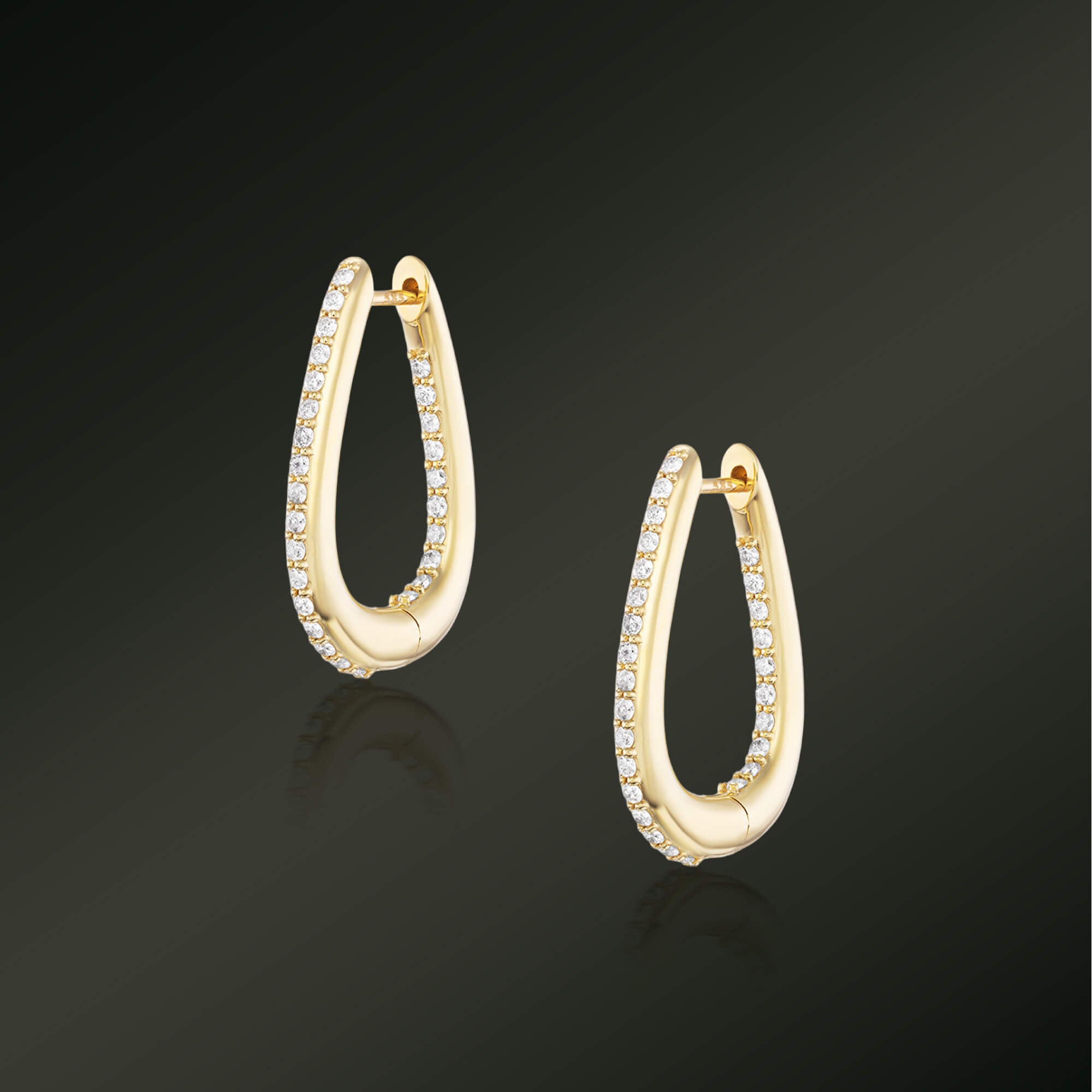 Peace Sign Charm on Diamond Huggie Hoop Earrings