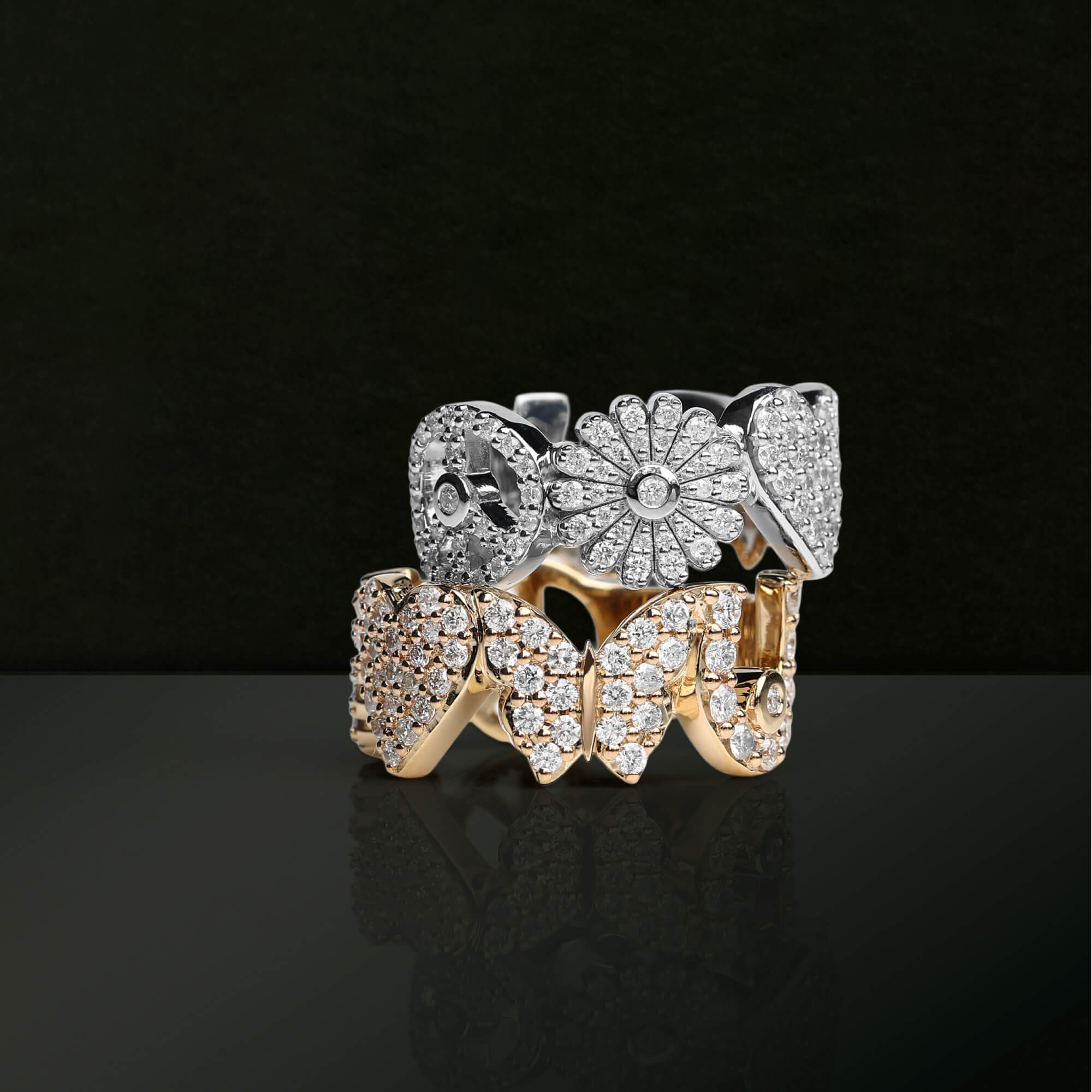 Mini Rainbow Cobblestone Confetti Cuff Ring