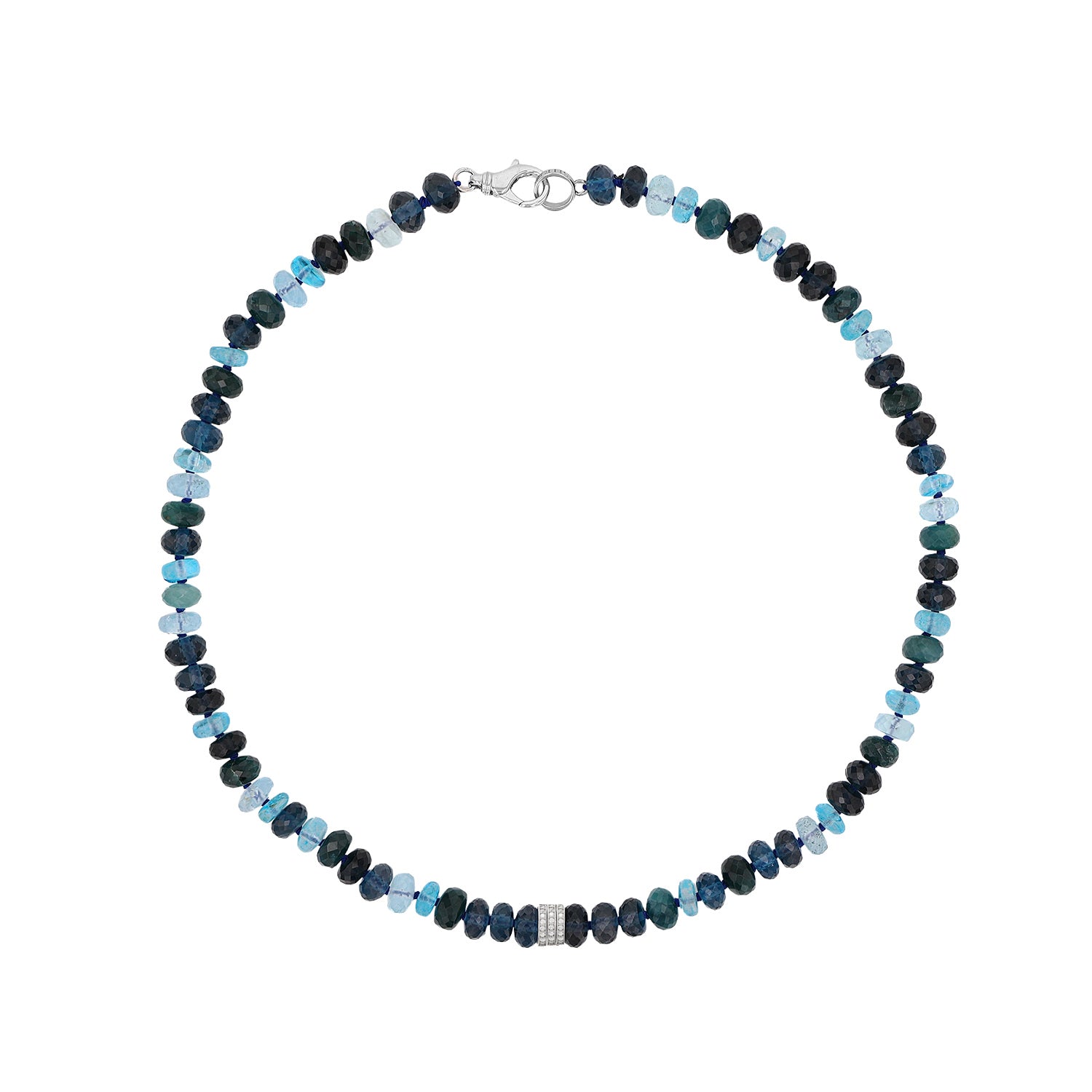 Blue & Gray Mix Strung Necklace with Diamond Rondelle - 18½"
