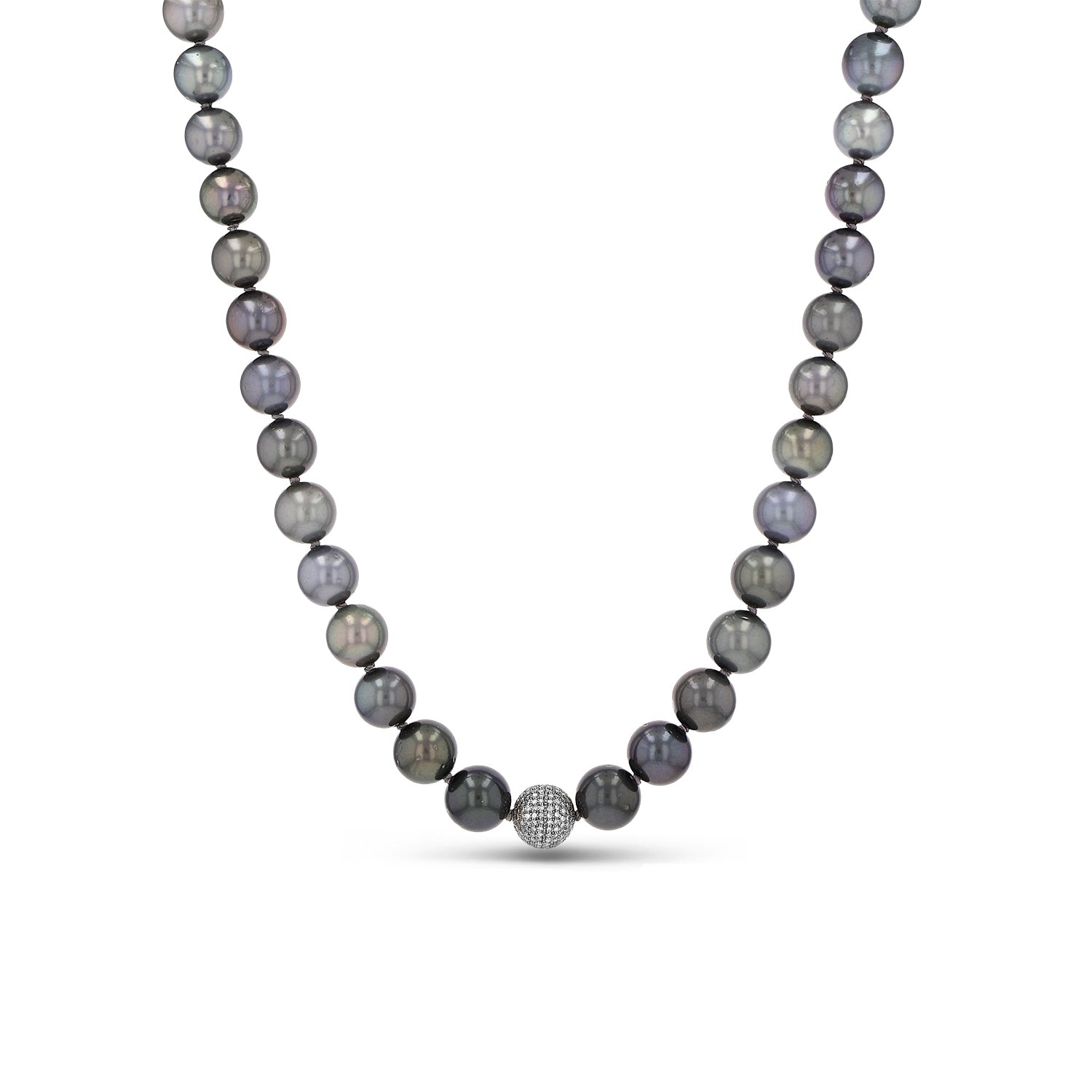 Tahitian Pearl Knotted Necklace with Diamond Ball Bead - 18"