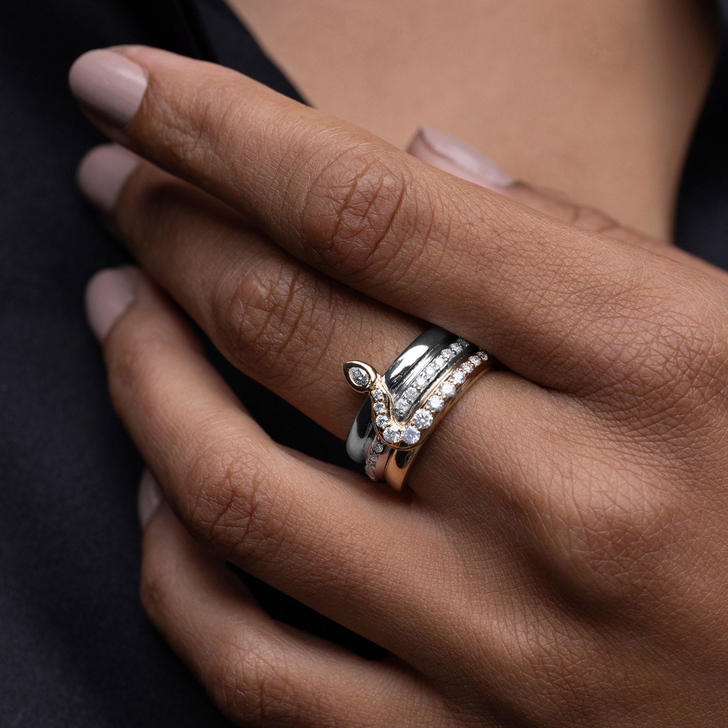 Fine jewelry has no rules. Mix things up with mixed metal jewelry pieces in silver and gold. This collection features pieces that are silver, gold and two tone. They can be mixed and matched for an effortlessly chic look. Add even more texture to your mixed metal look with diamond and colored gem styles.
