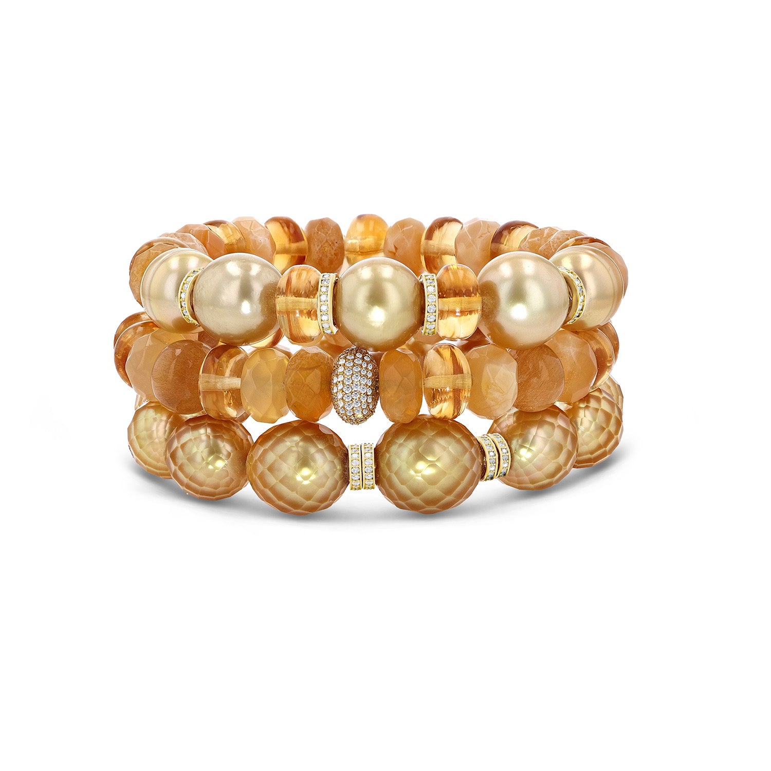The Loren Stack - 14k South Sea Pearls & Yellow Mix Beaded Bracelets - One of a Kind