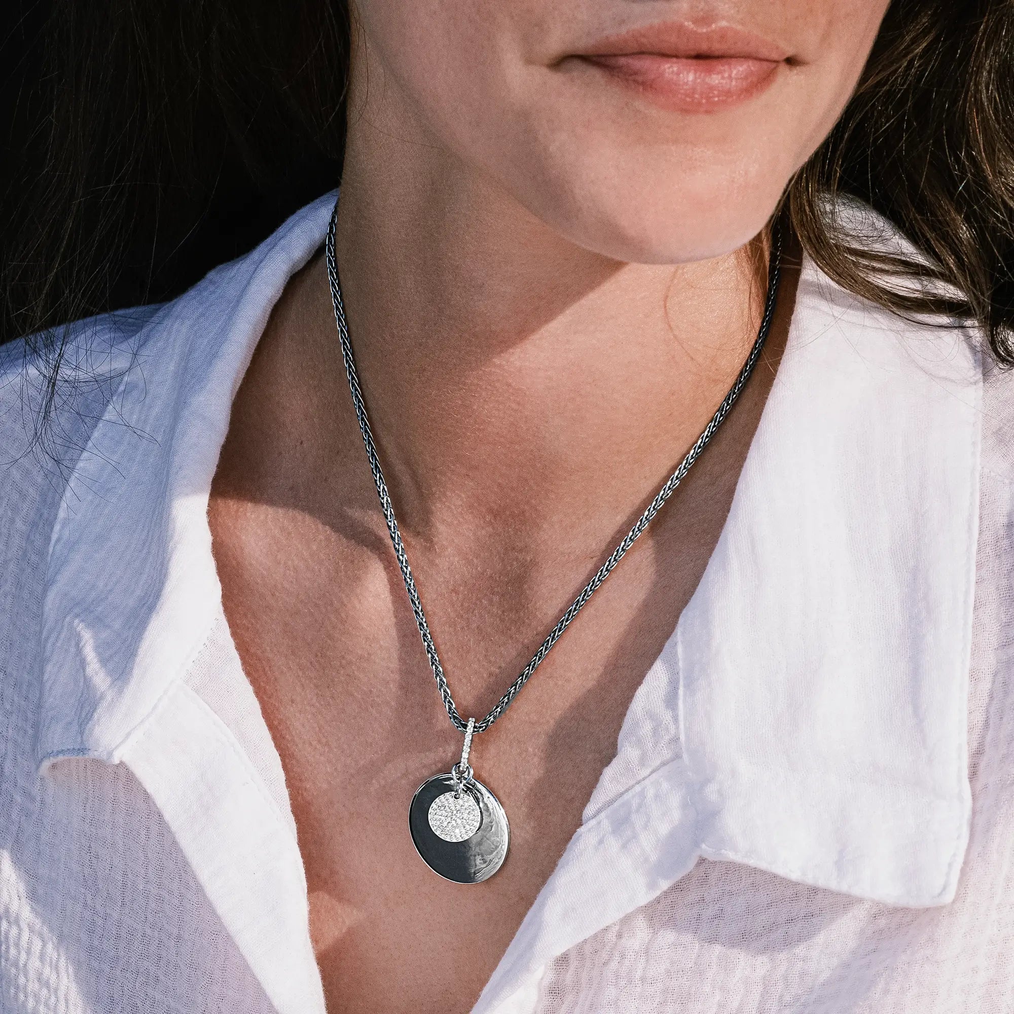 Custom Engravable Medallion Pendant with Diamond Disc Charm Necklace - 18"