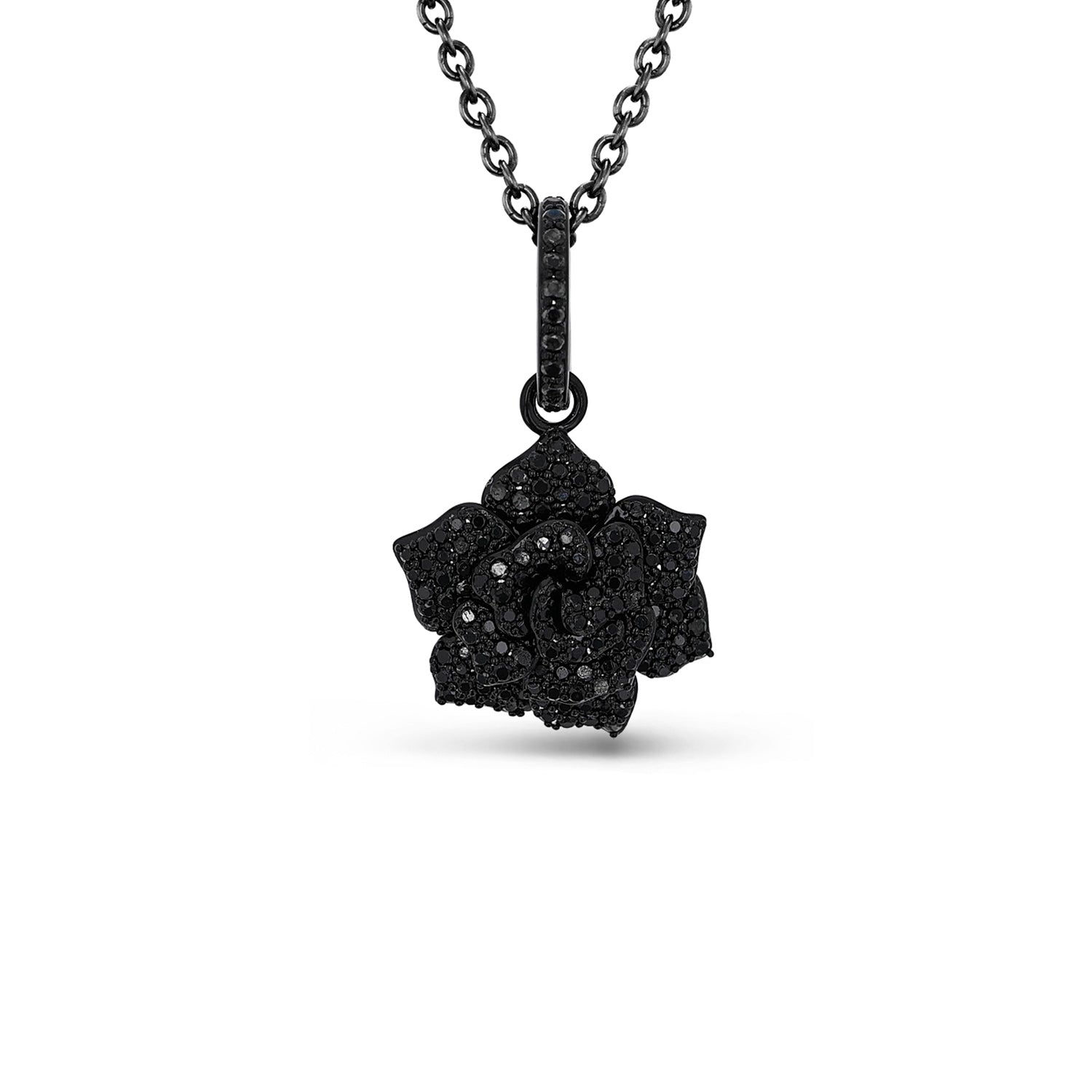 Black Diamond Rose Pendant on Double Cable Chain Necklace - 17"
