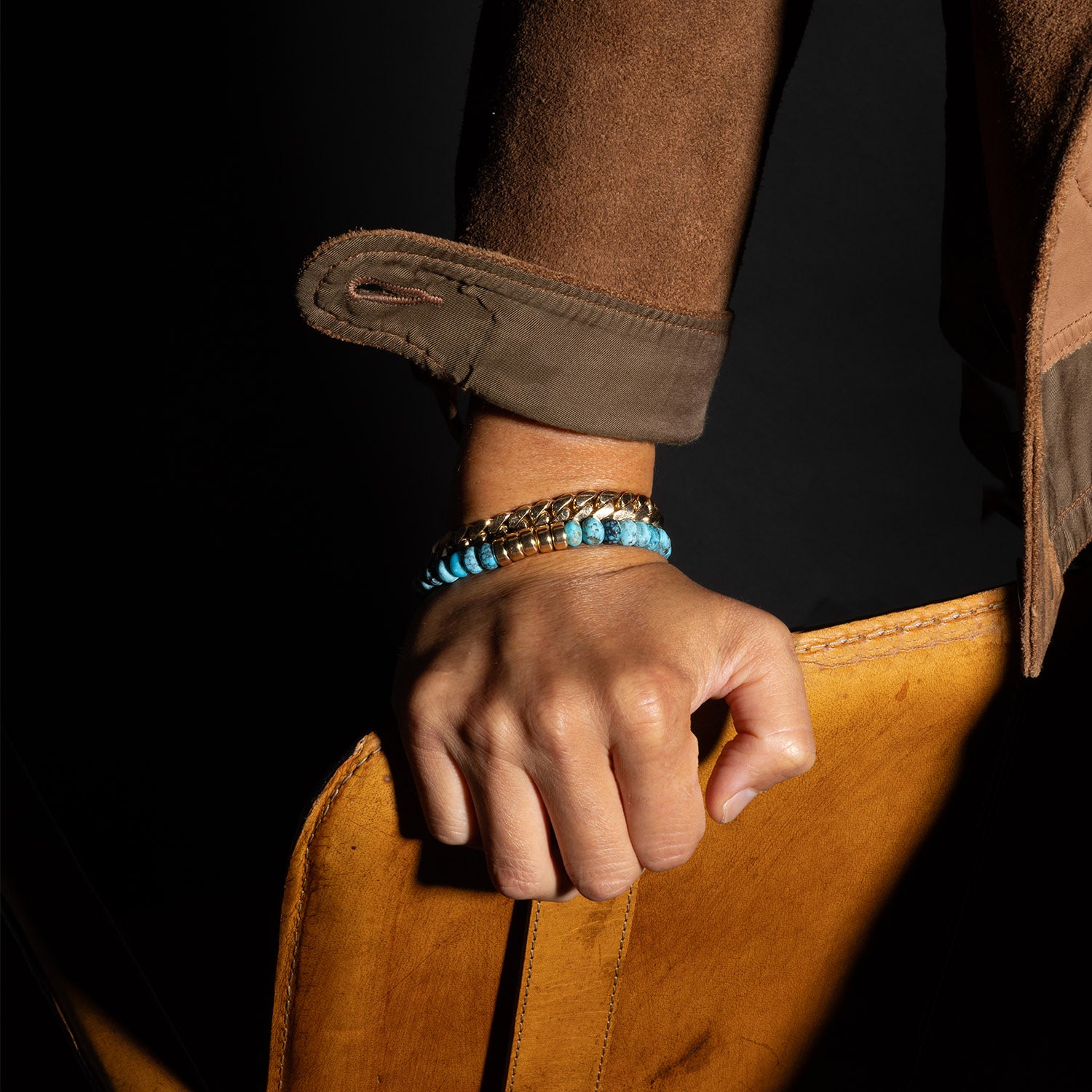 Turquoise is a natural stone that’s intrinsically beautiful and calming to the soul. Its gentle blue and green hues are associated with being connected to the Earth and with being grounded. It’s also the birthstone for the month of December. For thousands of years, people from all walks of life have adorned themselves with turquoise jewelry, and we are carrying on this storied tradition by offering you Sheryl’s vision of turquoise styles.
