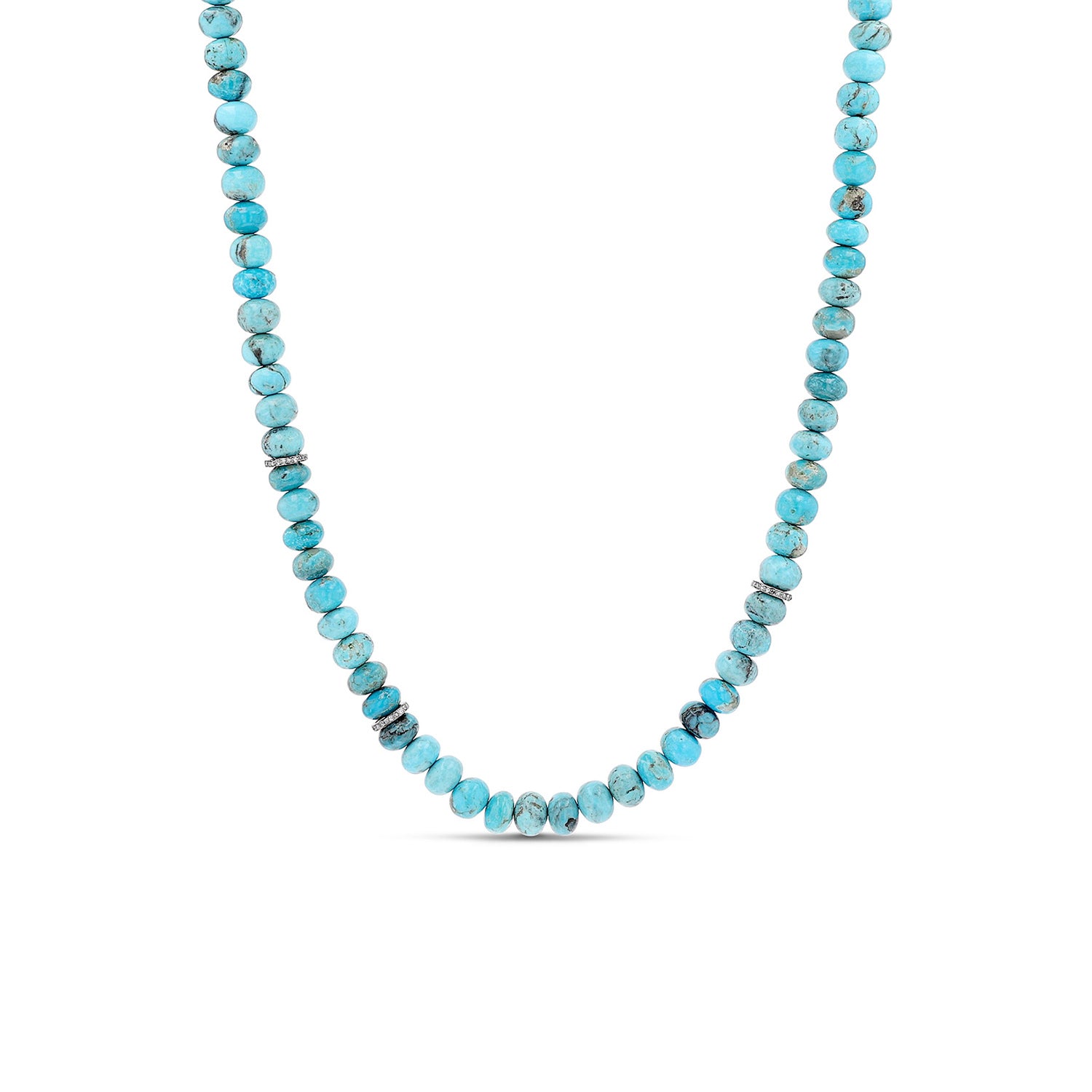 Turquoise is a natural stone that’s intrinsically beautiful and calming to the soul. Its gentle blue and green hues are associated with being connected to the Earth and with being grounded. It’s also the birthstone for the month of December. For thousands of years, people from all walks of life have adorned themselves with turquoise jewelry, and we are carrying on this storied tradition by offering you Sheryl’s vision of turquoise styles.