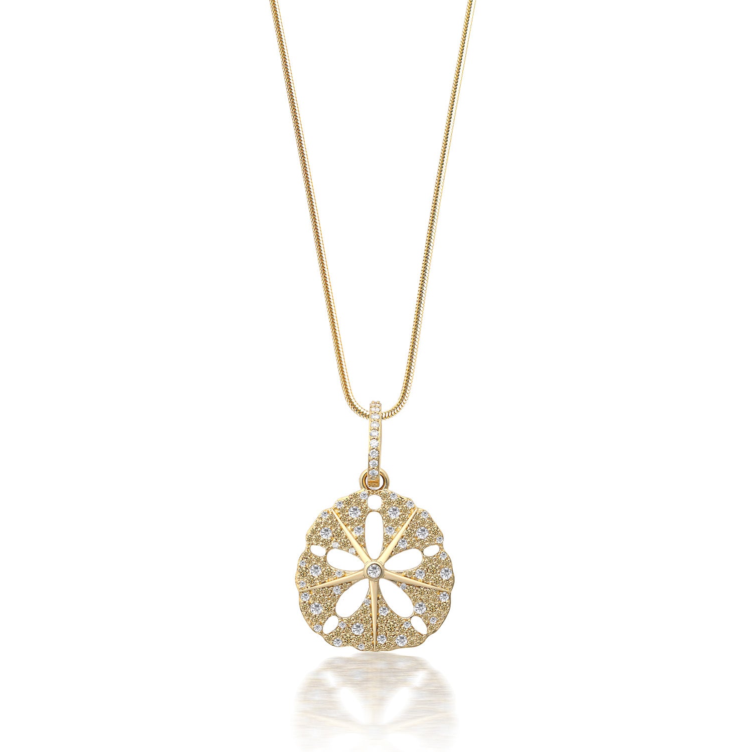 14k Sand Dollar Pendant Necklace with Champagne & White Diamonds- 30"
