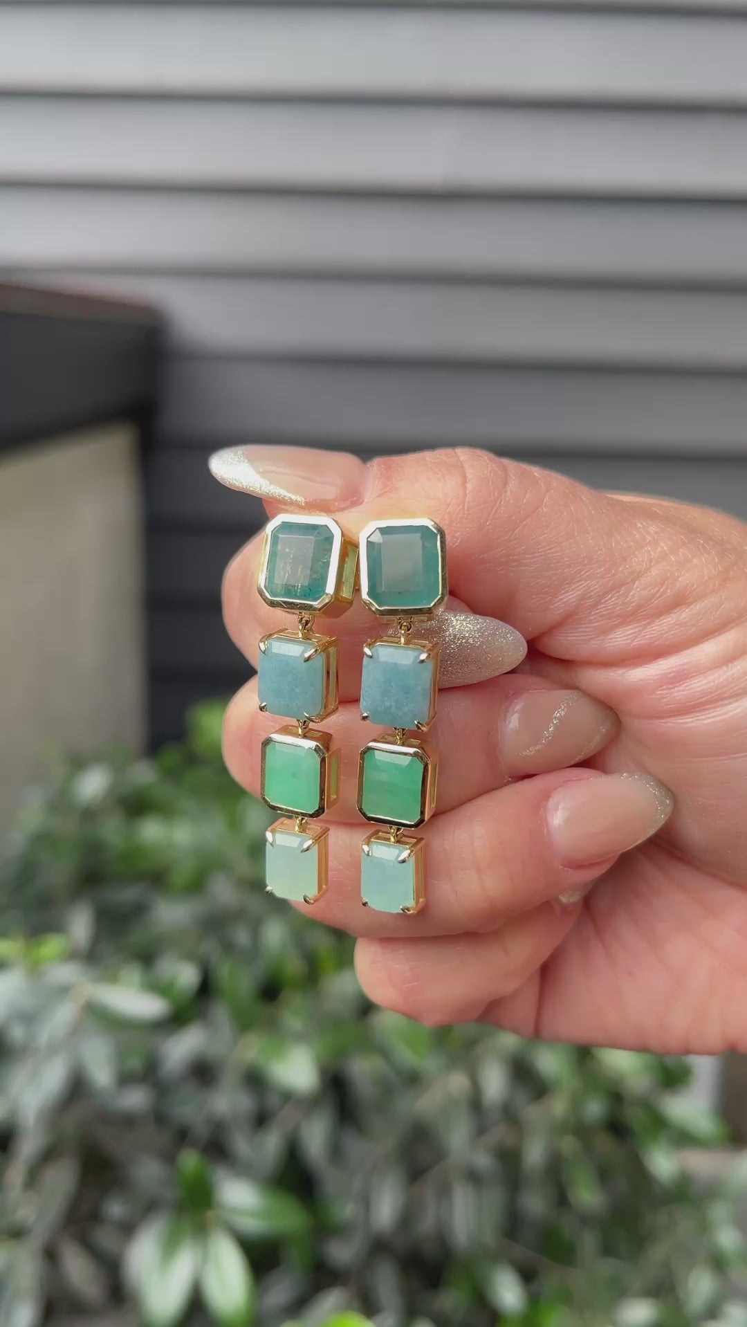 Boucles d'oreilles pendantes en or 14 carats, grandidiérite, Paraiba et émeraude - Pièce unique