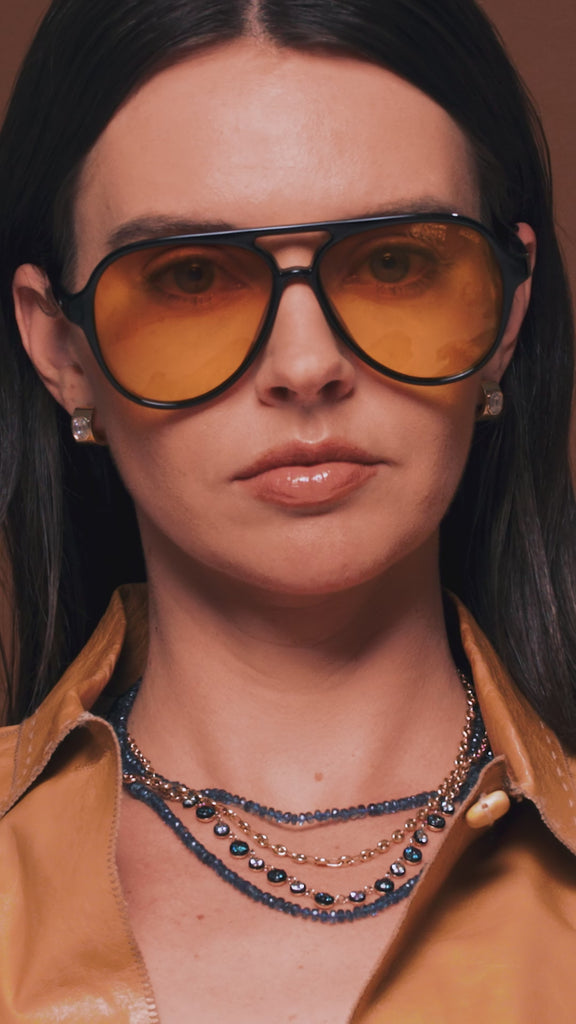 14k Heirloom London Blue Topaz & Aquamarine Necklace with Black Enamel Settings - 18"