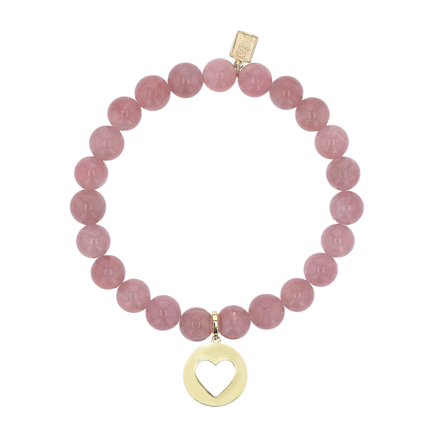 Bracelet en quartz rose 14 carats avec breloque cœur ouvert - 8 mm