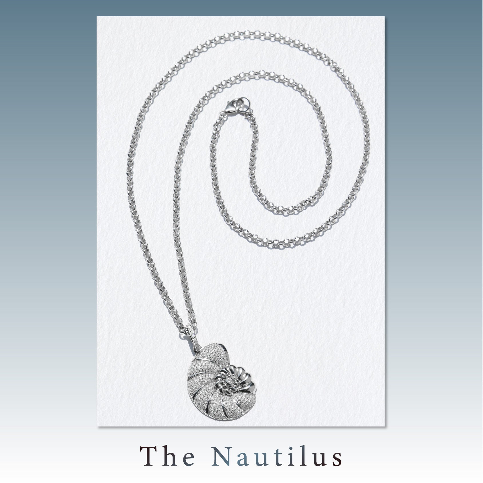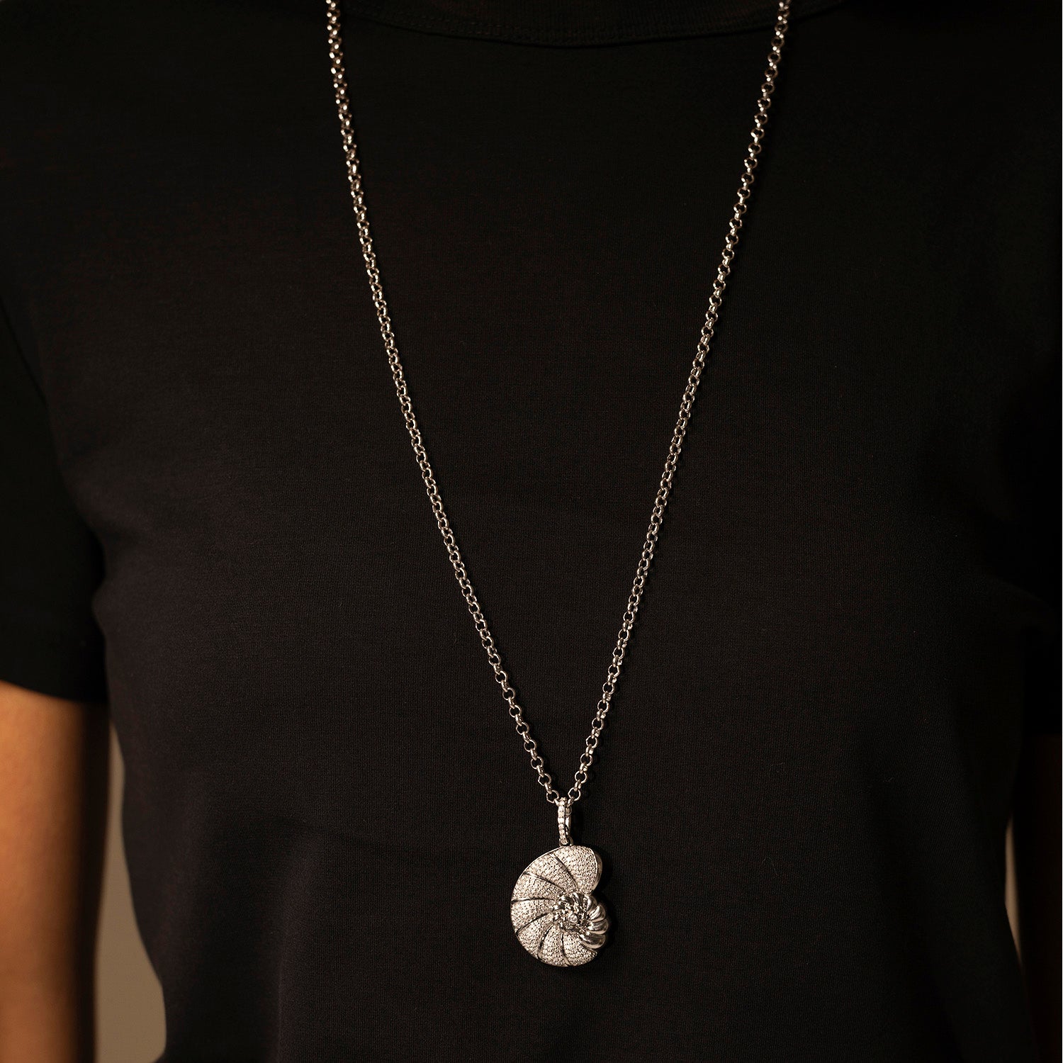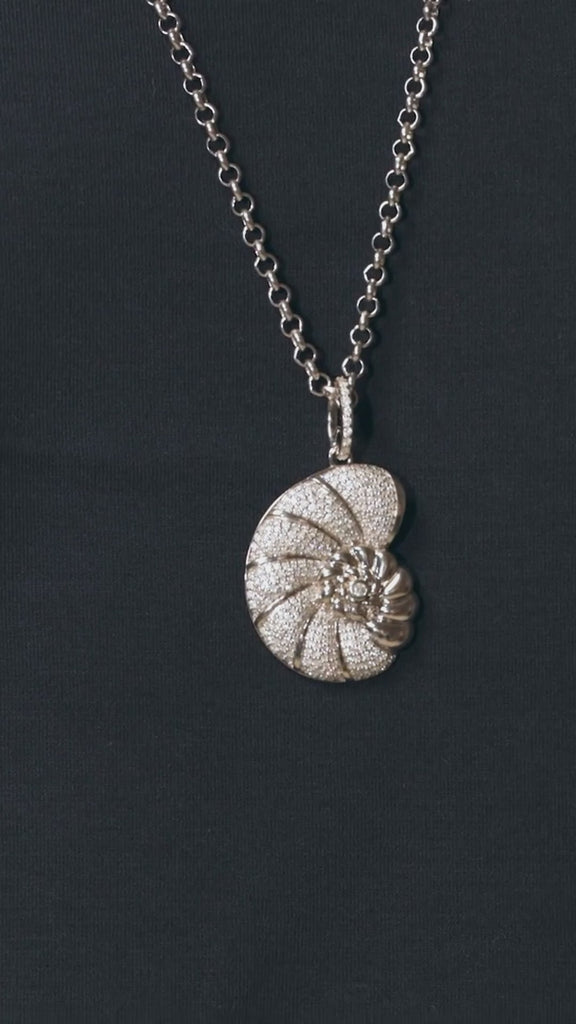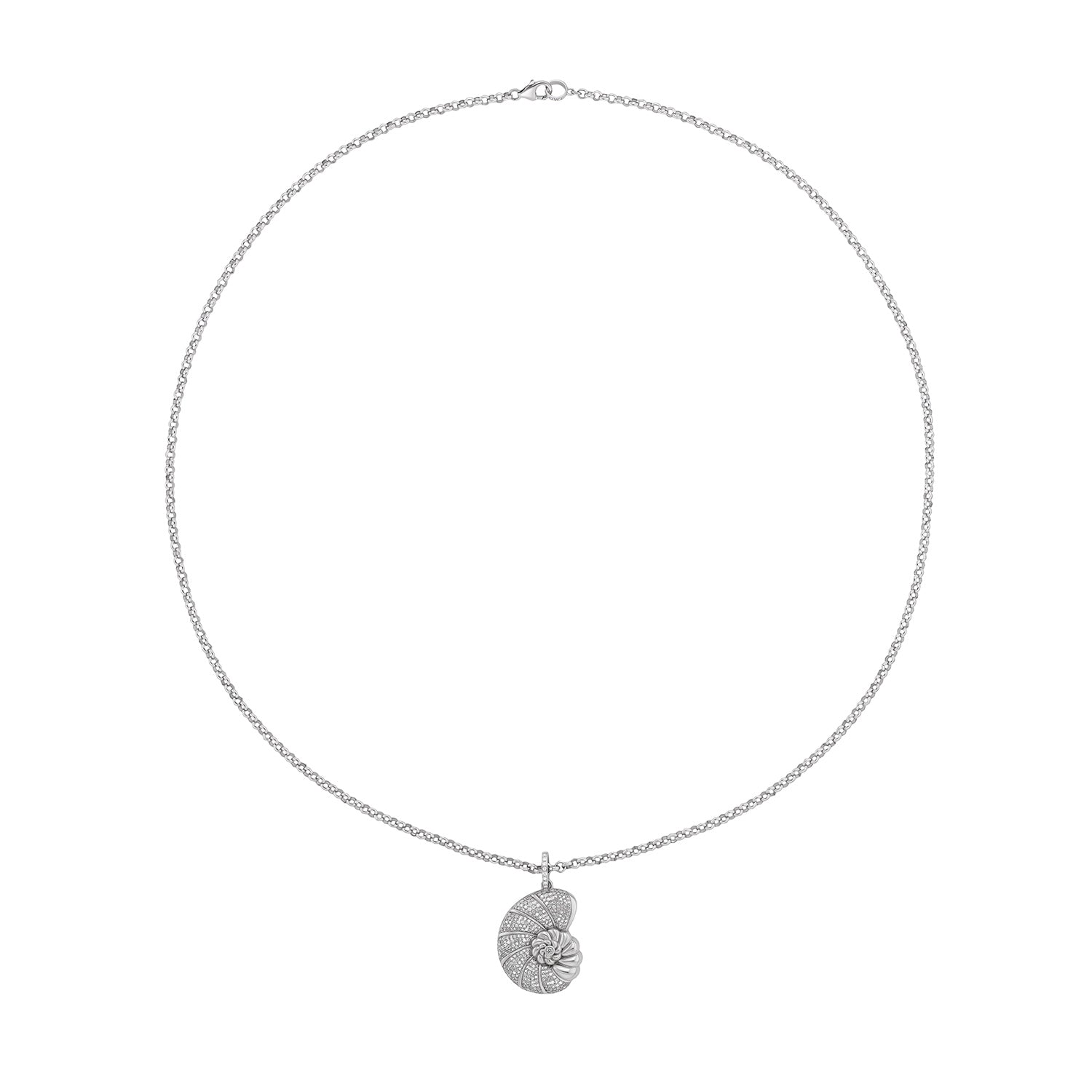 Collier avec pendentif coquillage nautile en diamant sur chaîne Belcher - 81 cm