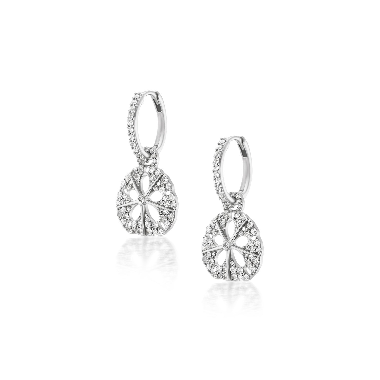 Boucles d'oreilles créoles en diamant avec pendentif dollar des sables et diamant