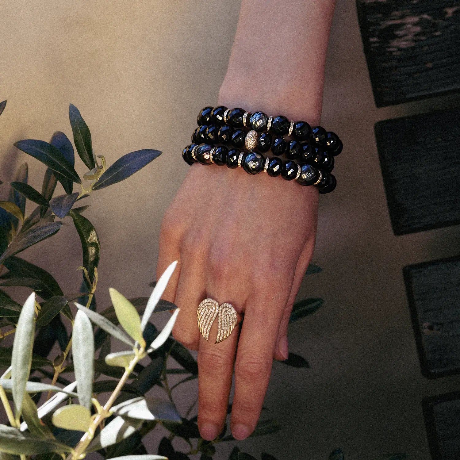 - Bracelet 2 : perles rondelles à facettes de 10 mm ; 1 donut en diamant de 10 mm (0,85 carat)