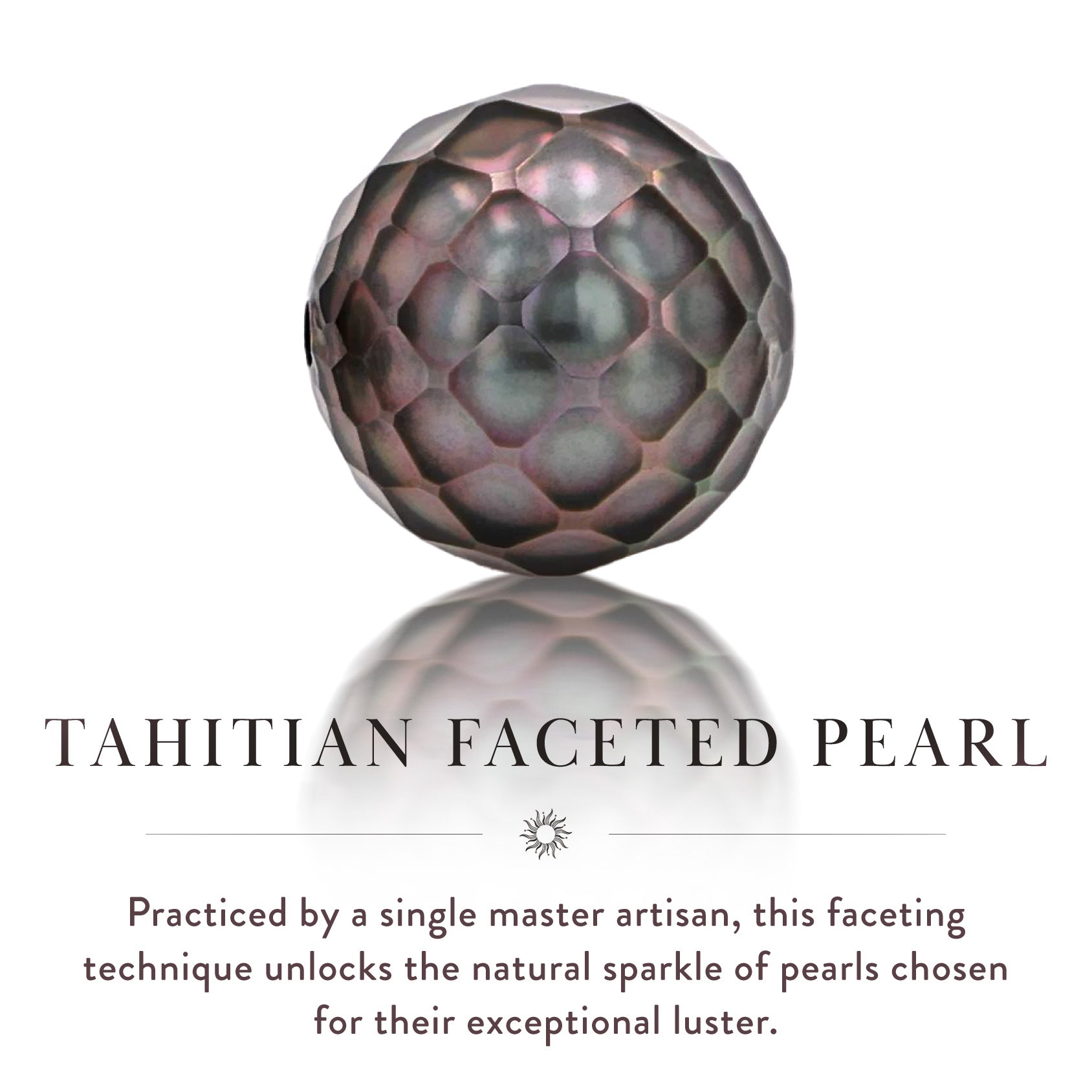 - Bracelet 3 : perles rondes à facettes de 10 mm, 1 perle de Tahiti à facettes à la main de 10 mm ; 4 rondelles de diamants de 8 mm (0,36 carat)