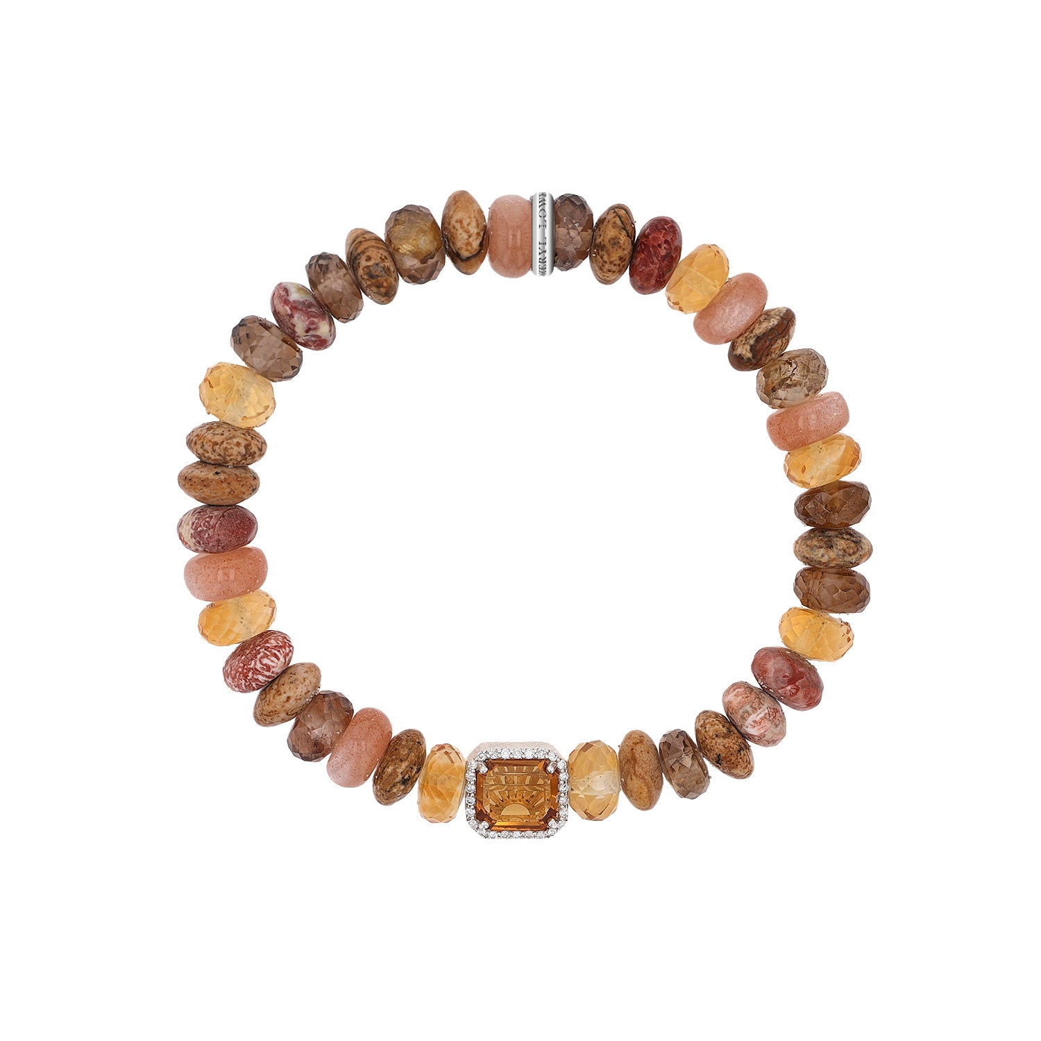 Bracelet de perles jaunes et brunes mélangées avec une perle de citrine de connexion - 8 mm