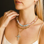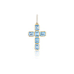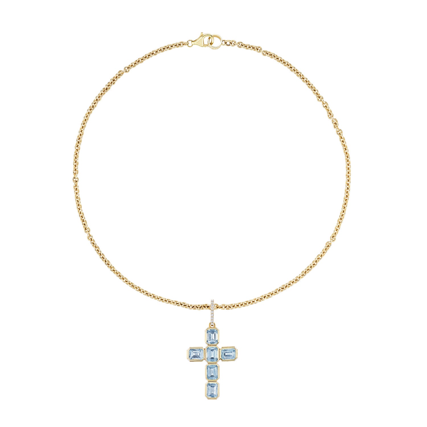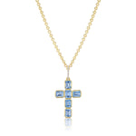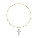 14k Aquamarine Bezel Set Cross Pendant on 14k Cable Chain Necklace - 18"