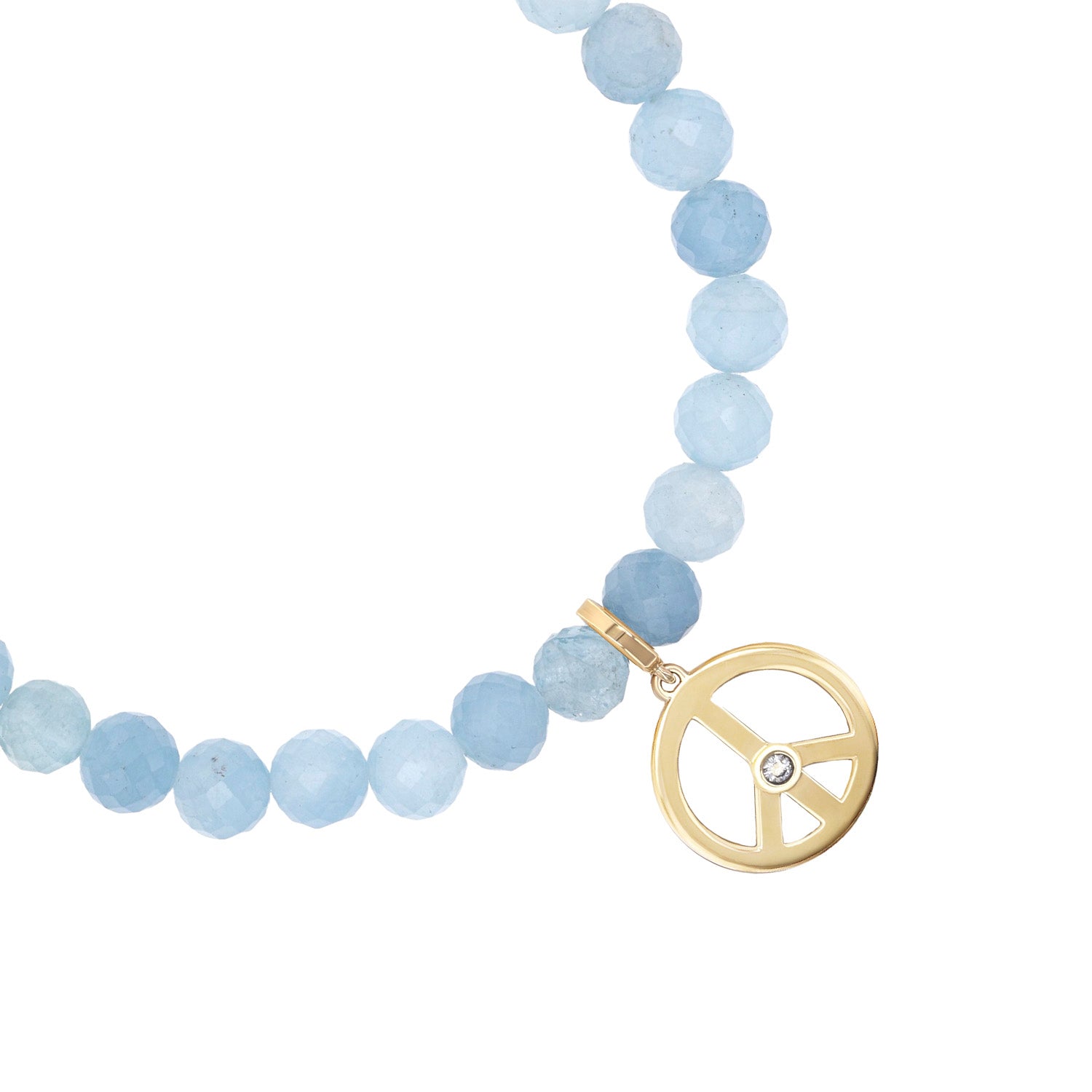14k Aquamarine Bracelet with Peace Sign Charm - 6mm