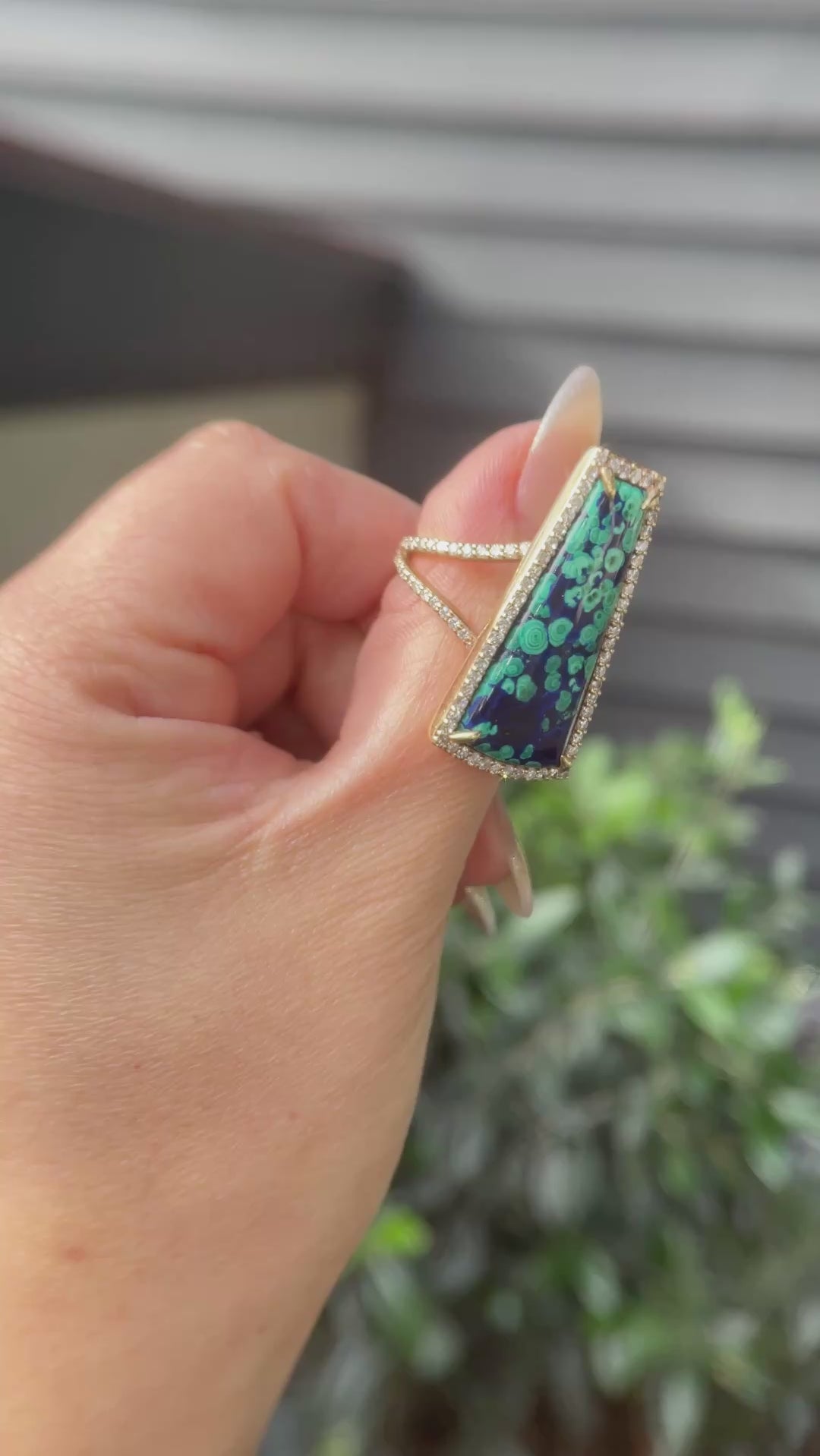 14k Azurite & Malachite Diamond Split Shank Ring - One of a Kind
