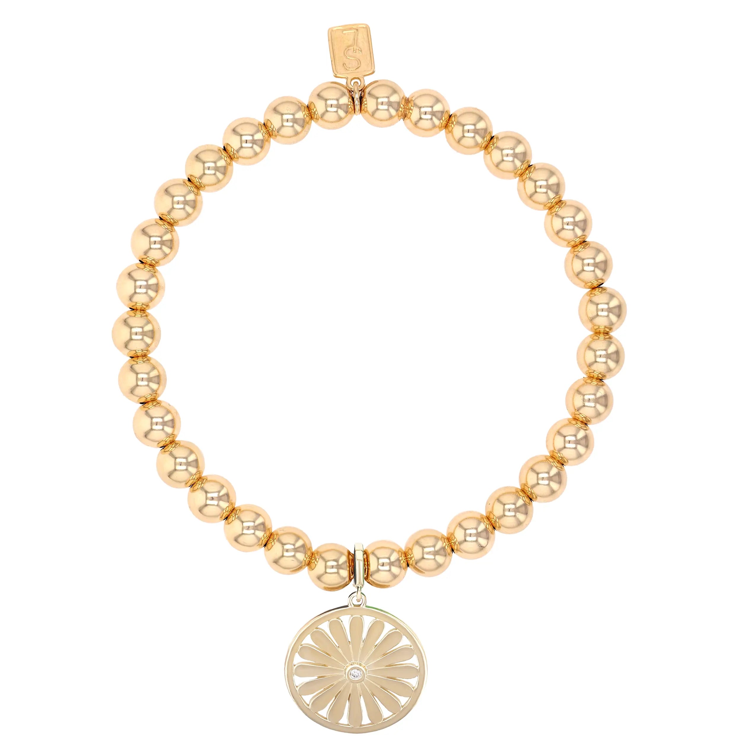 14k Bali Beaded Bracelet with Daisy Charm - 6mm