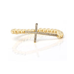14k Gold Bali Beaded Bracelet with Diamond Cross