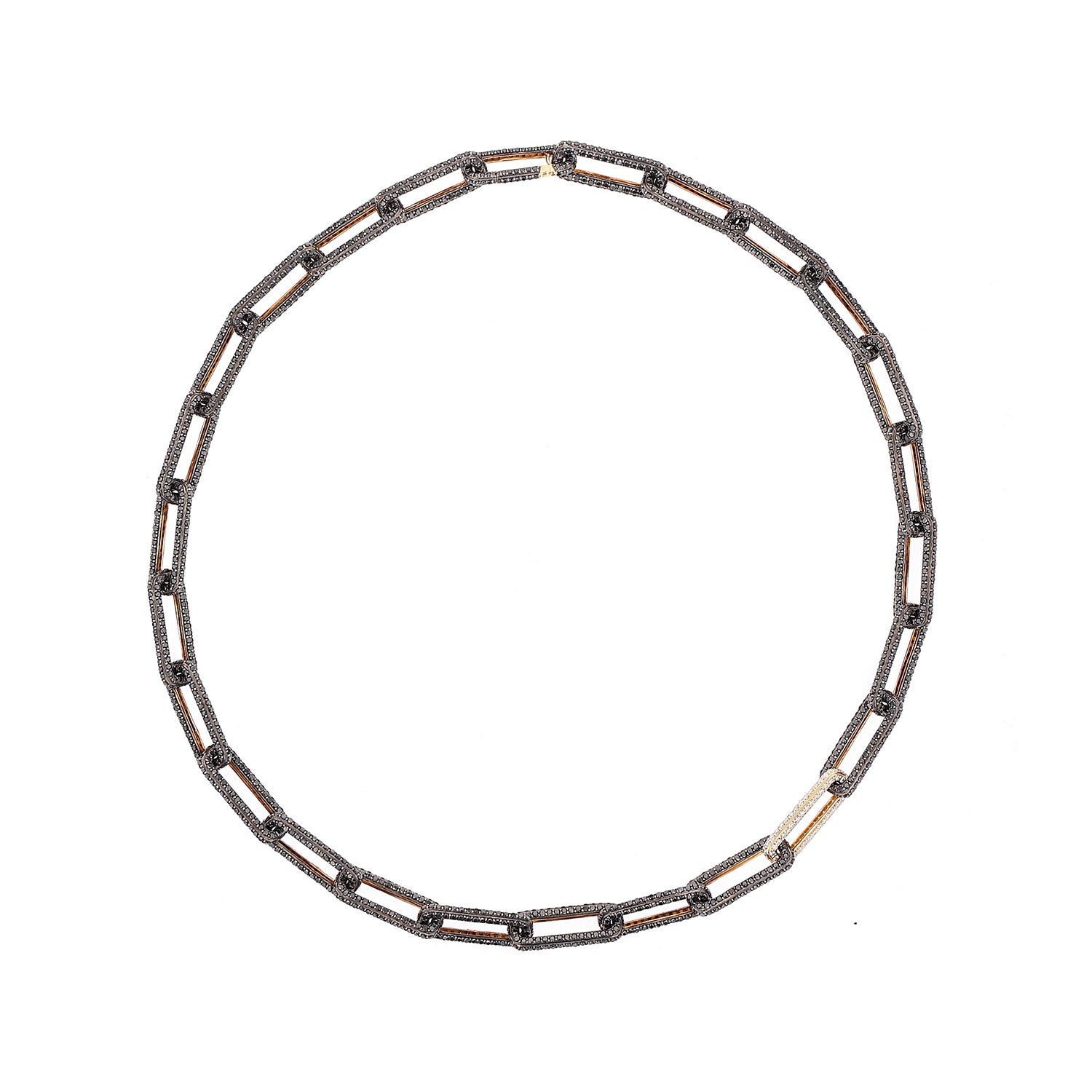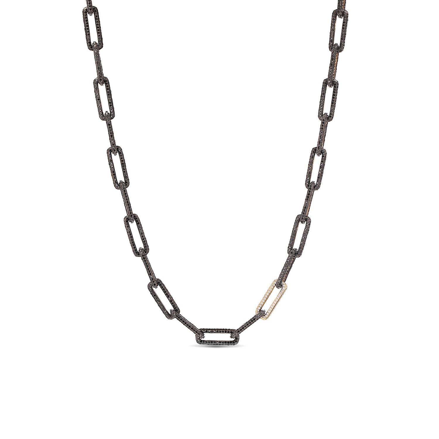 14k Black Diamond Link Necklace with 14k White Diamond Link - 18"