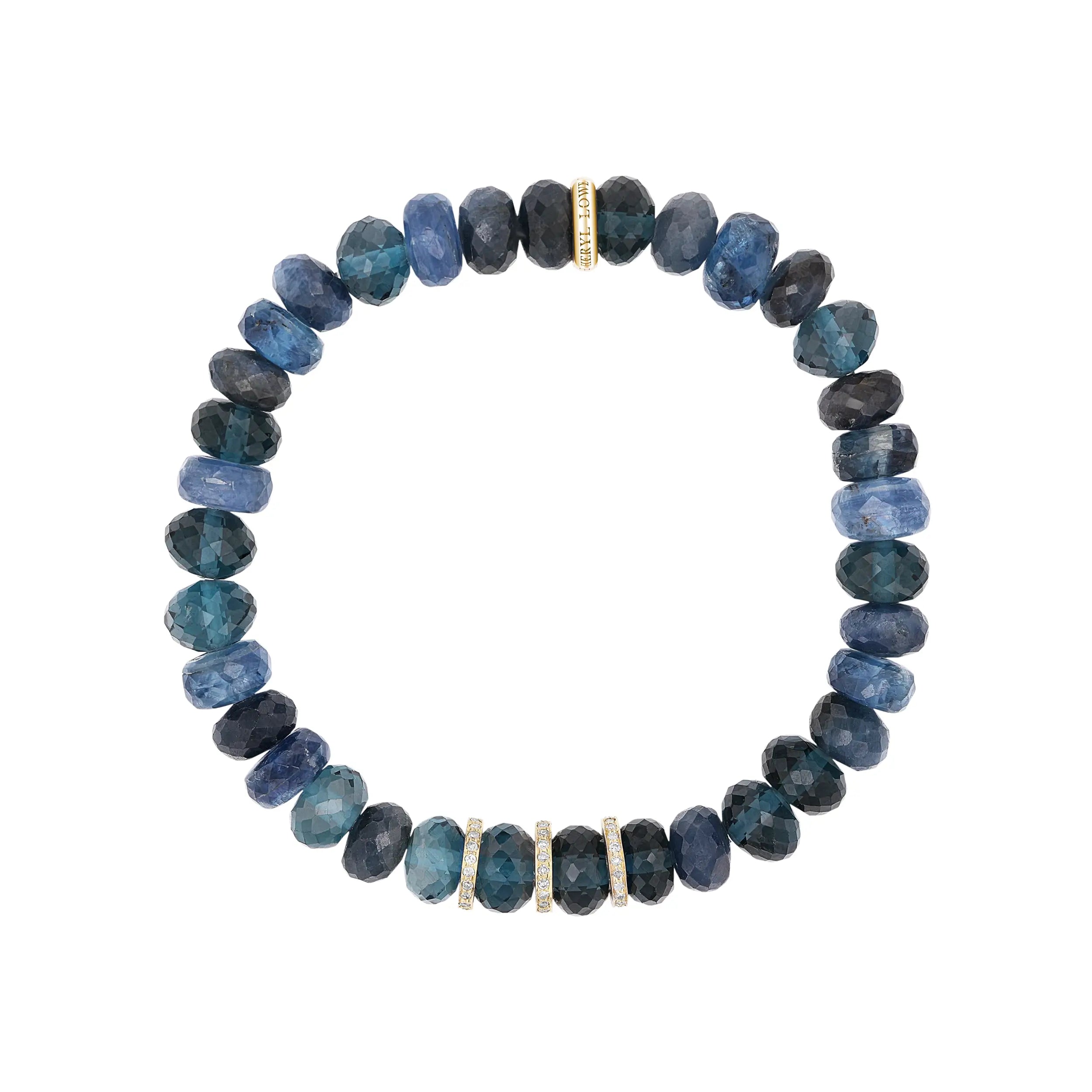 14k Blue Mix Gemstone Beaded Bracelet with Diamond Rondelles - 8mm