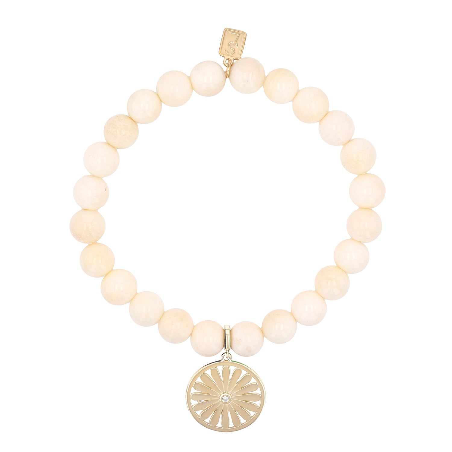 14k Bone Bracelet with Daisy Charm - 8mm