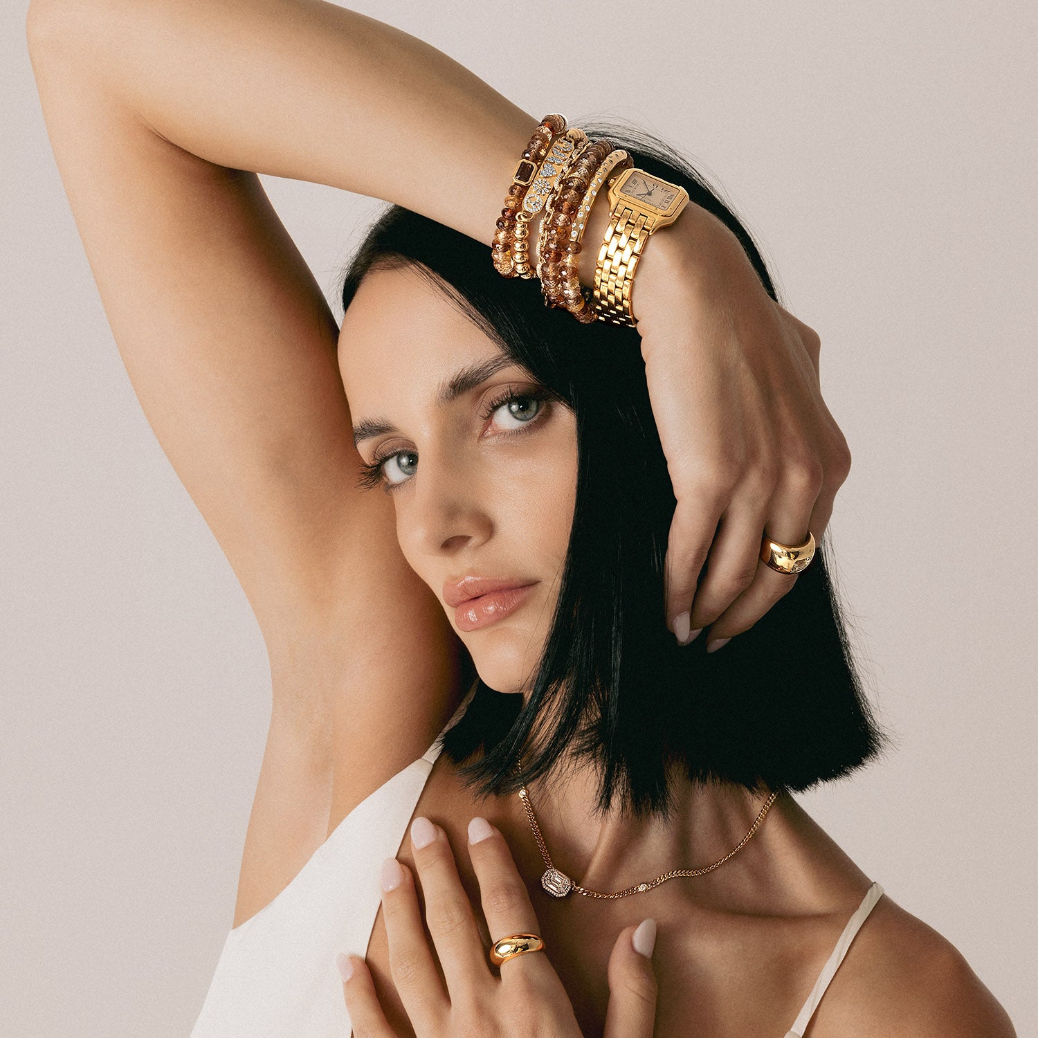 14k Brown Zircon Beaded Bracelet with Diamond Bar - One of a Kind
