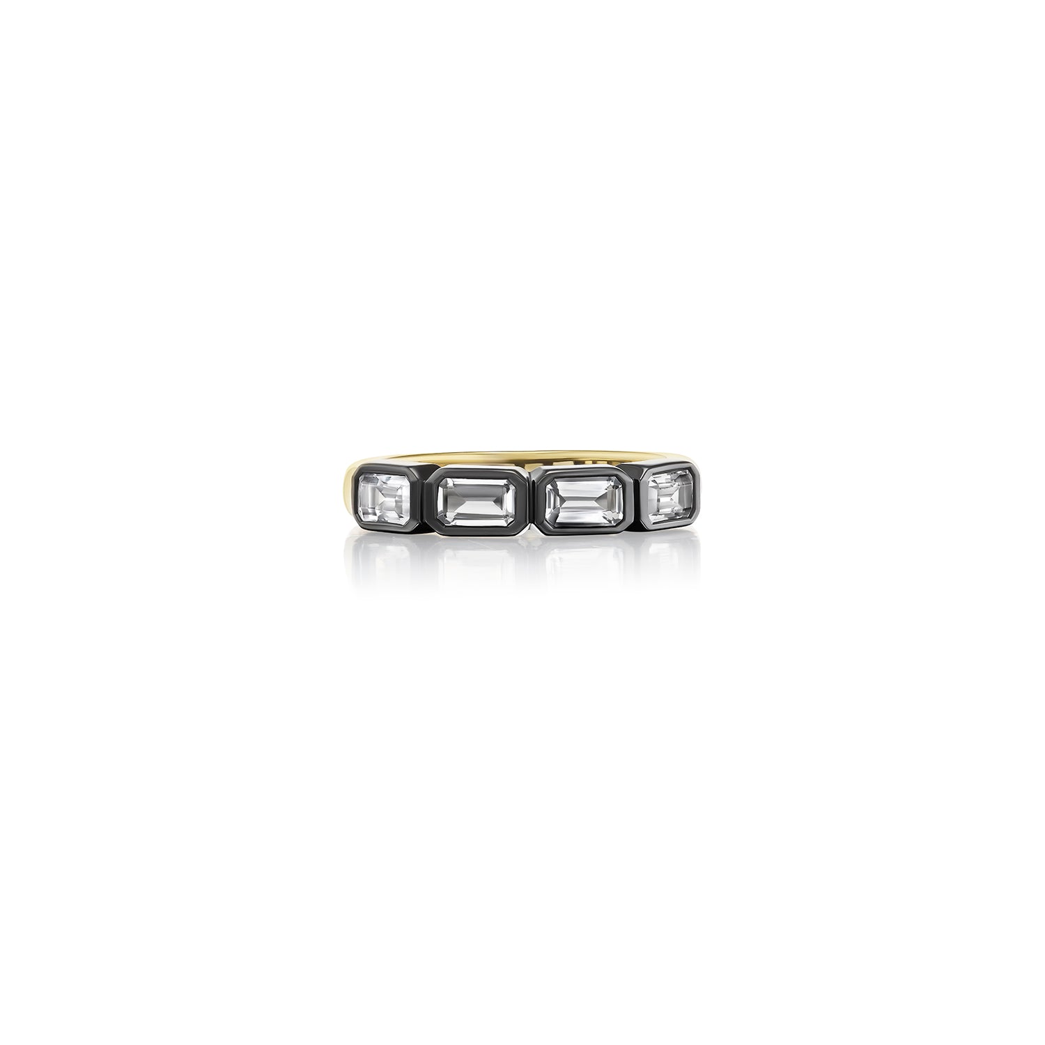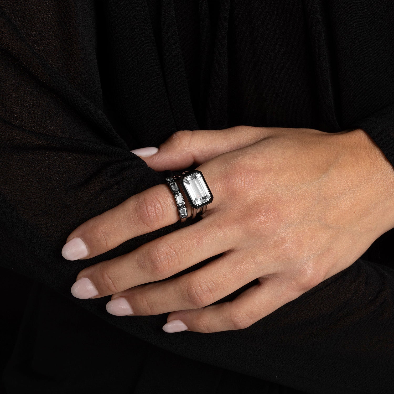 14k Crystal Quartz Emerald Cut with Black Rhodium Trim Stacking Band Ring