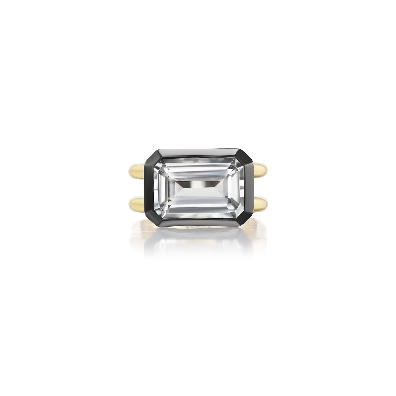 14k Crystal Quartz with Black Rhodium Trim Double Donut Shank Ring