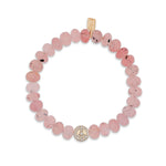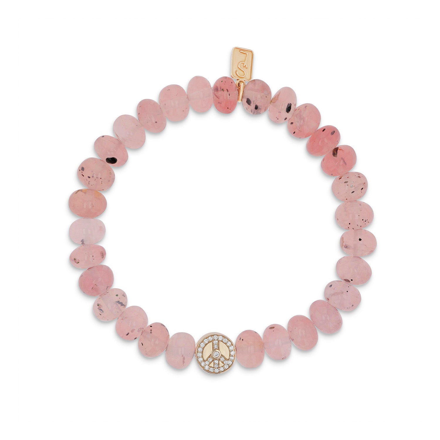 14k Cuties Icon Bracelet - Rose Quartz with Diamond Peace Sign Bead