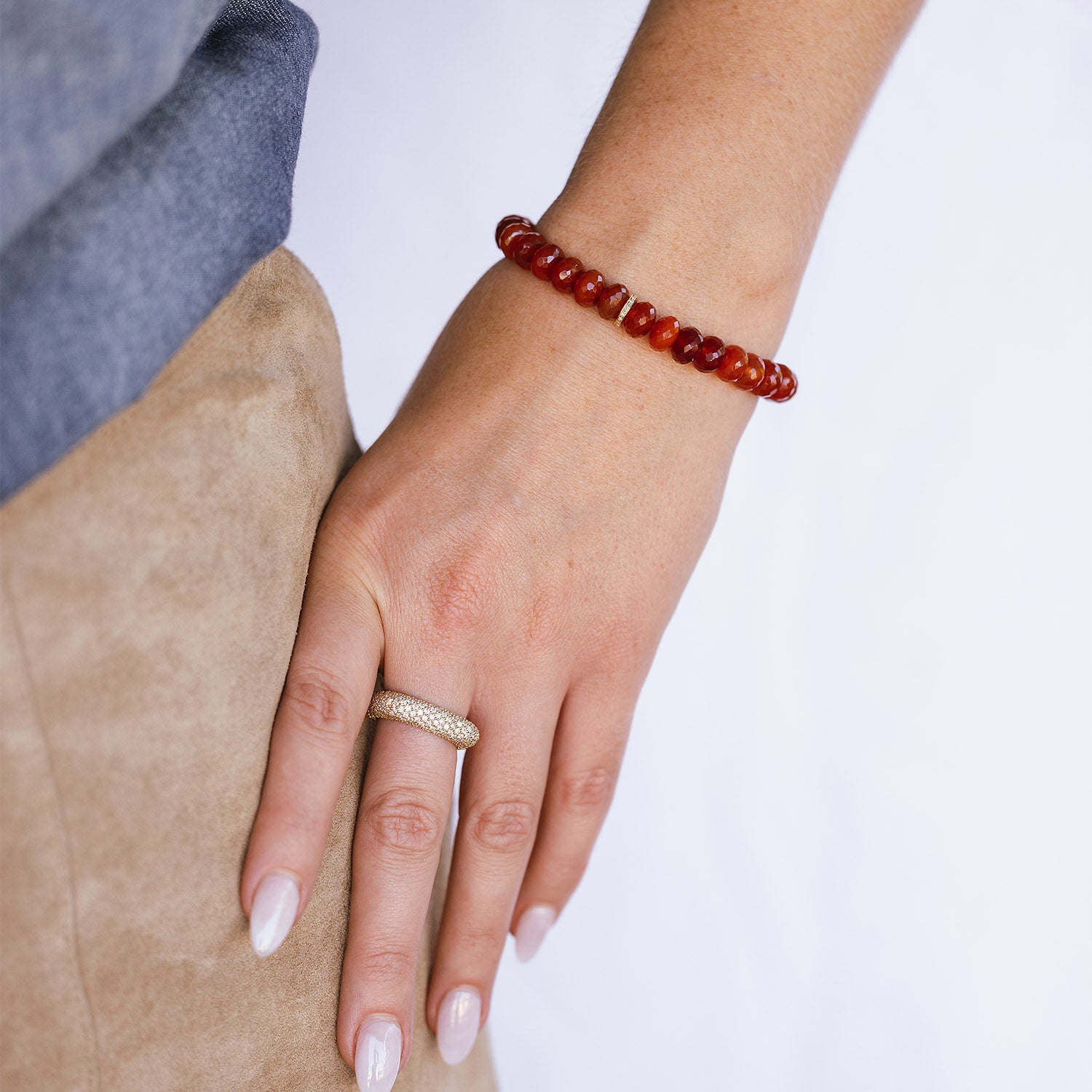 14k Dark Carnelian Bracelet with Diamond Rondelle - 8mm