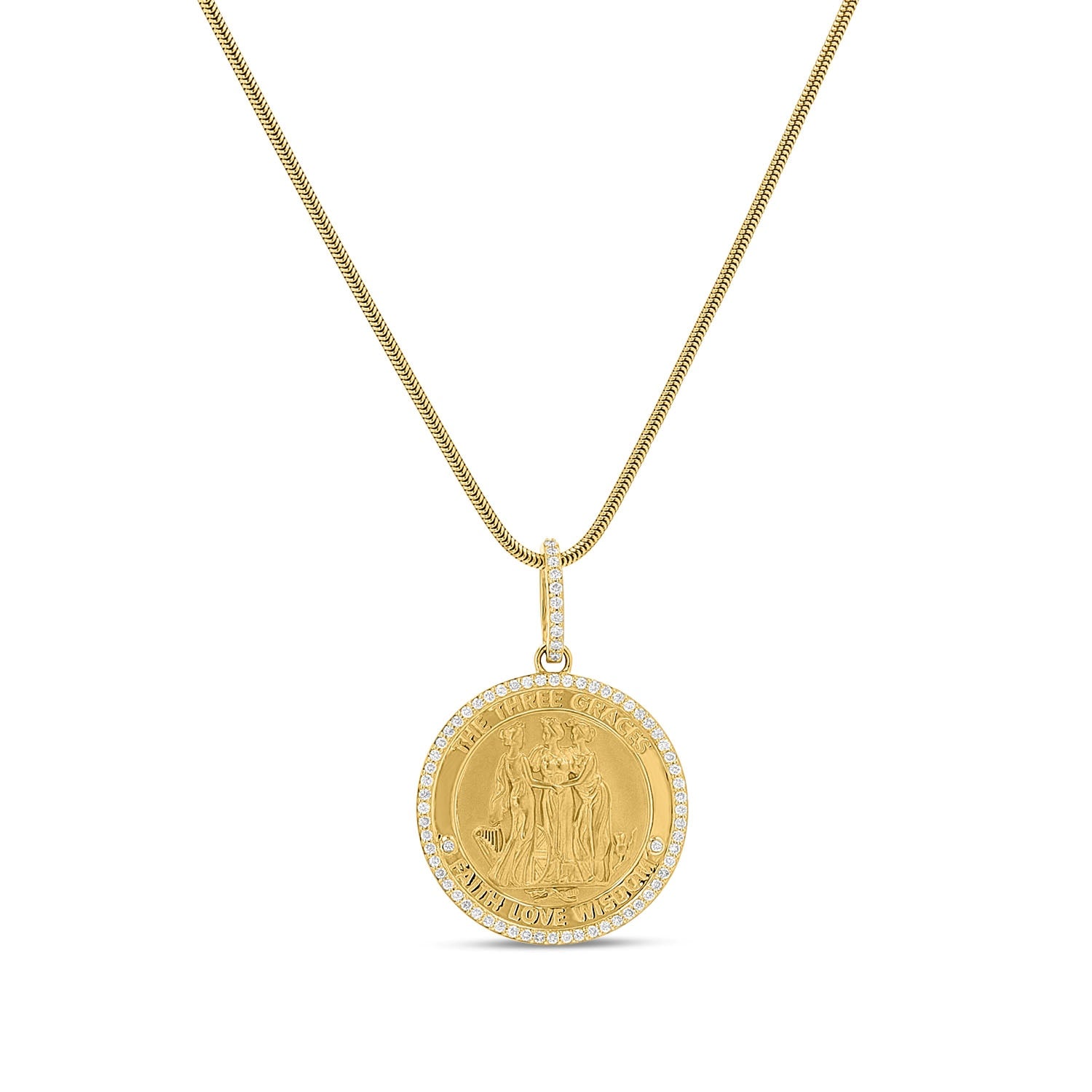 14k Diamond Three Graces Medallion "Faith Love Wisdom" - 30mm