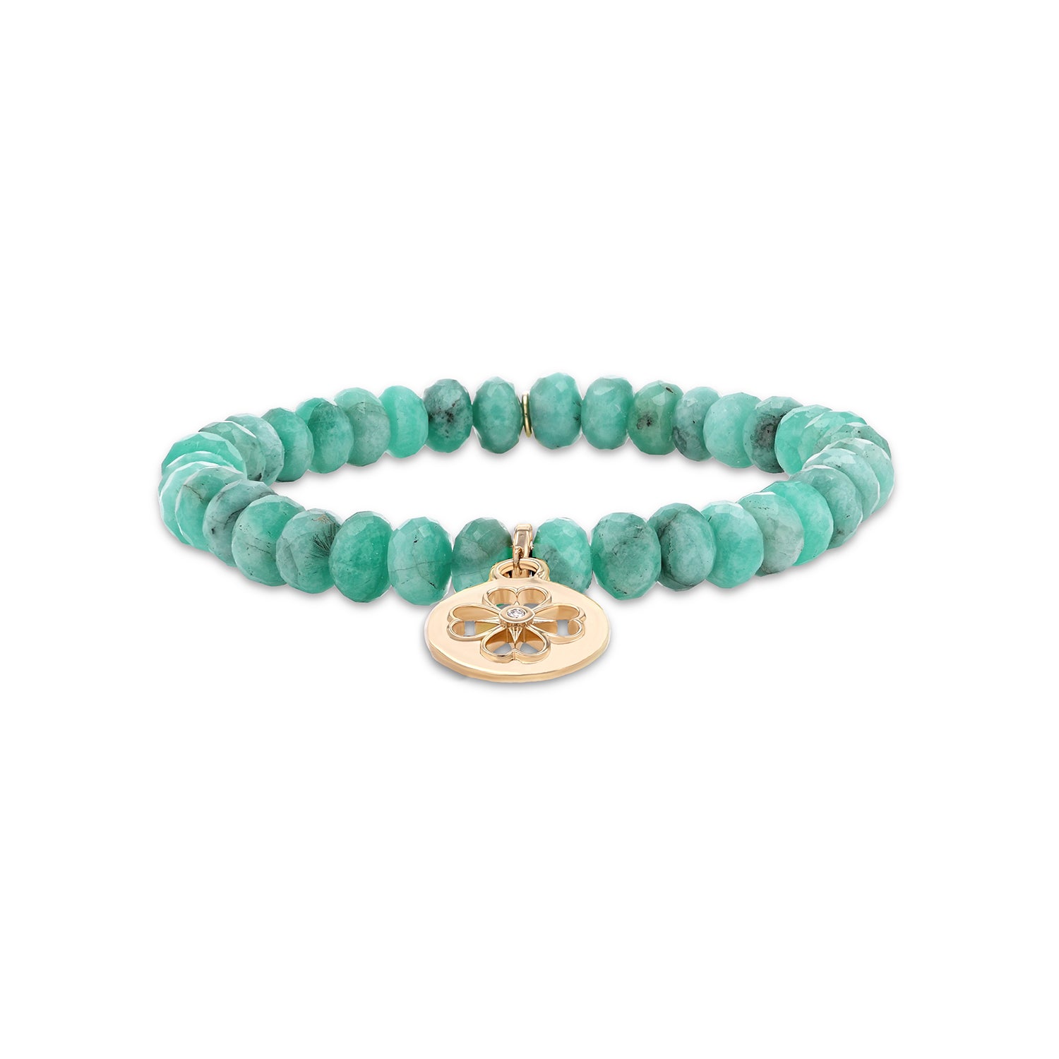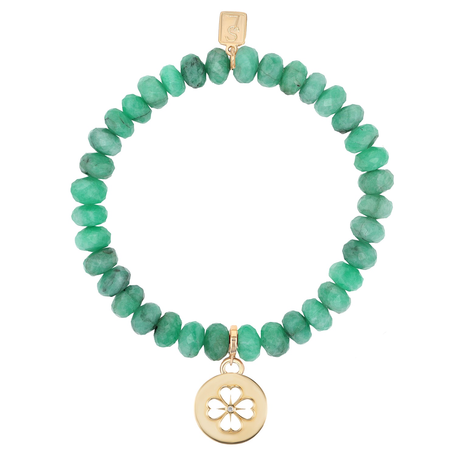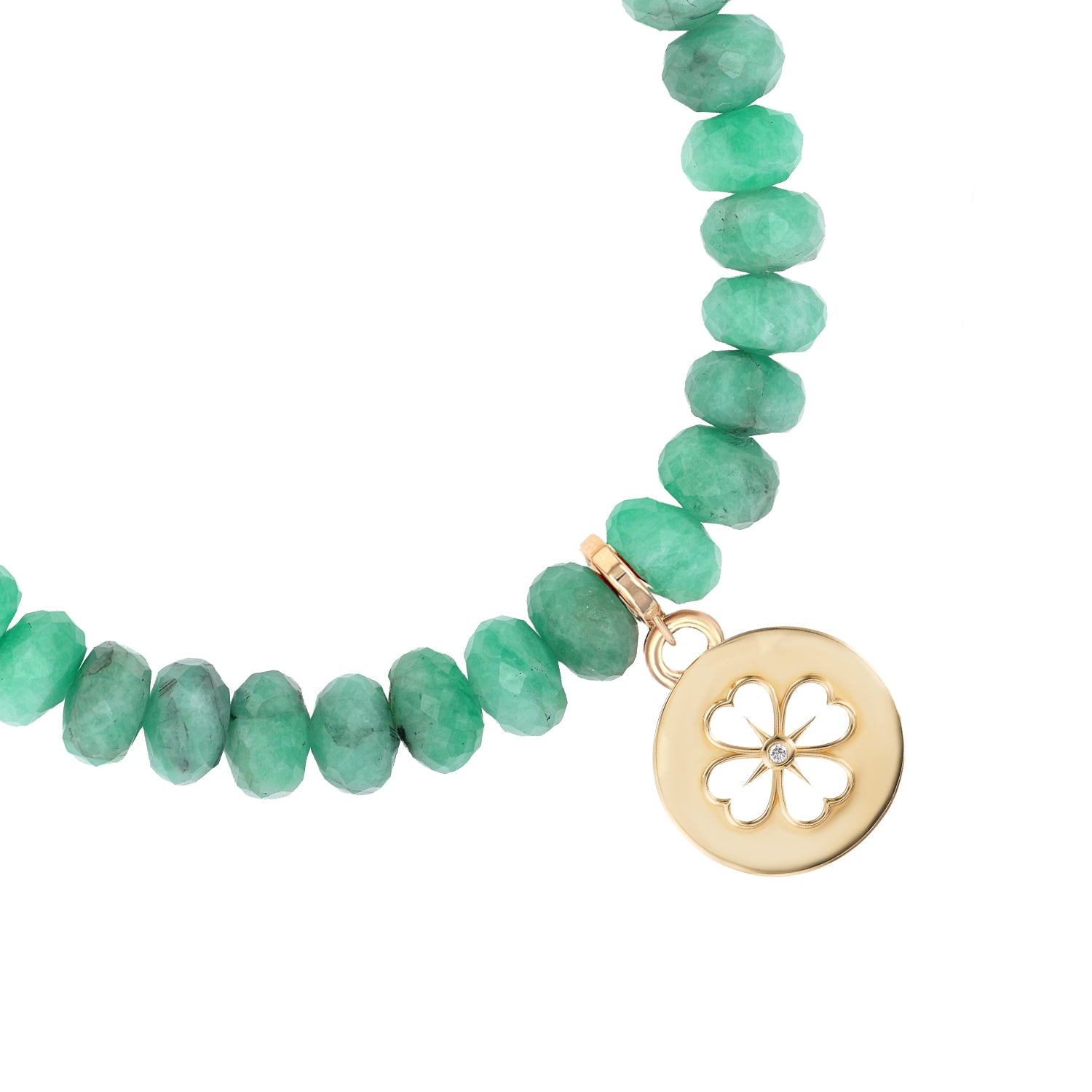 14k Emerald Bracelet with Open Clover Charm - 7mm