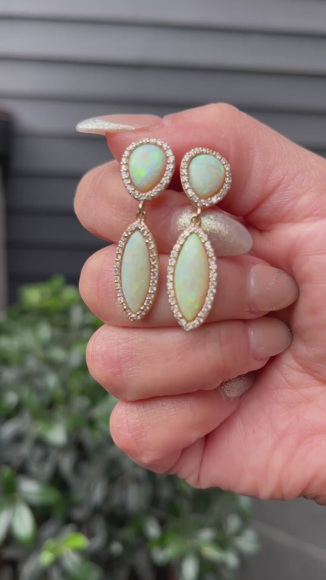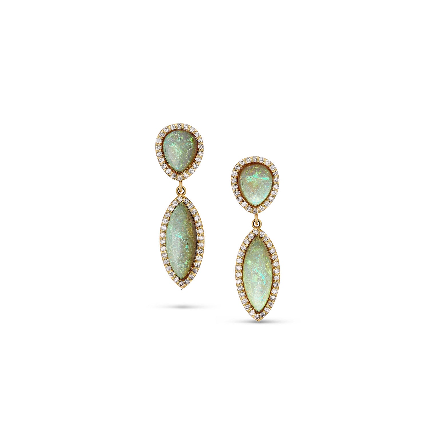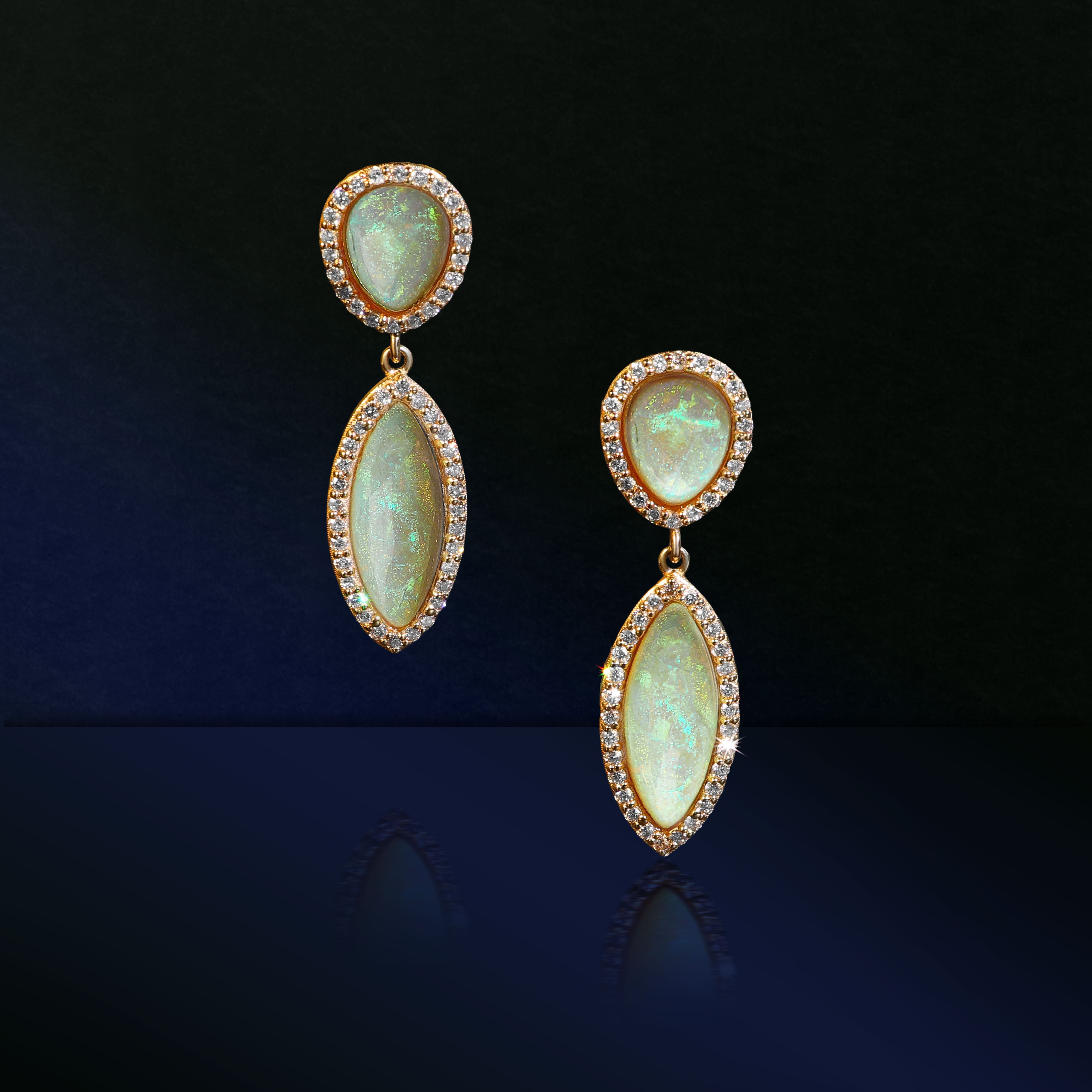 14k Ethiopian Opal Teardrop Earrings with Diamond Halo - One of a Kind
