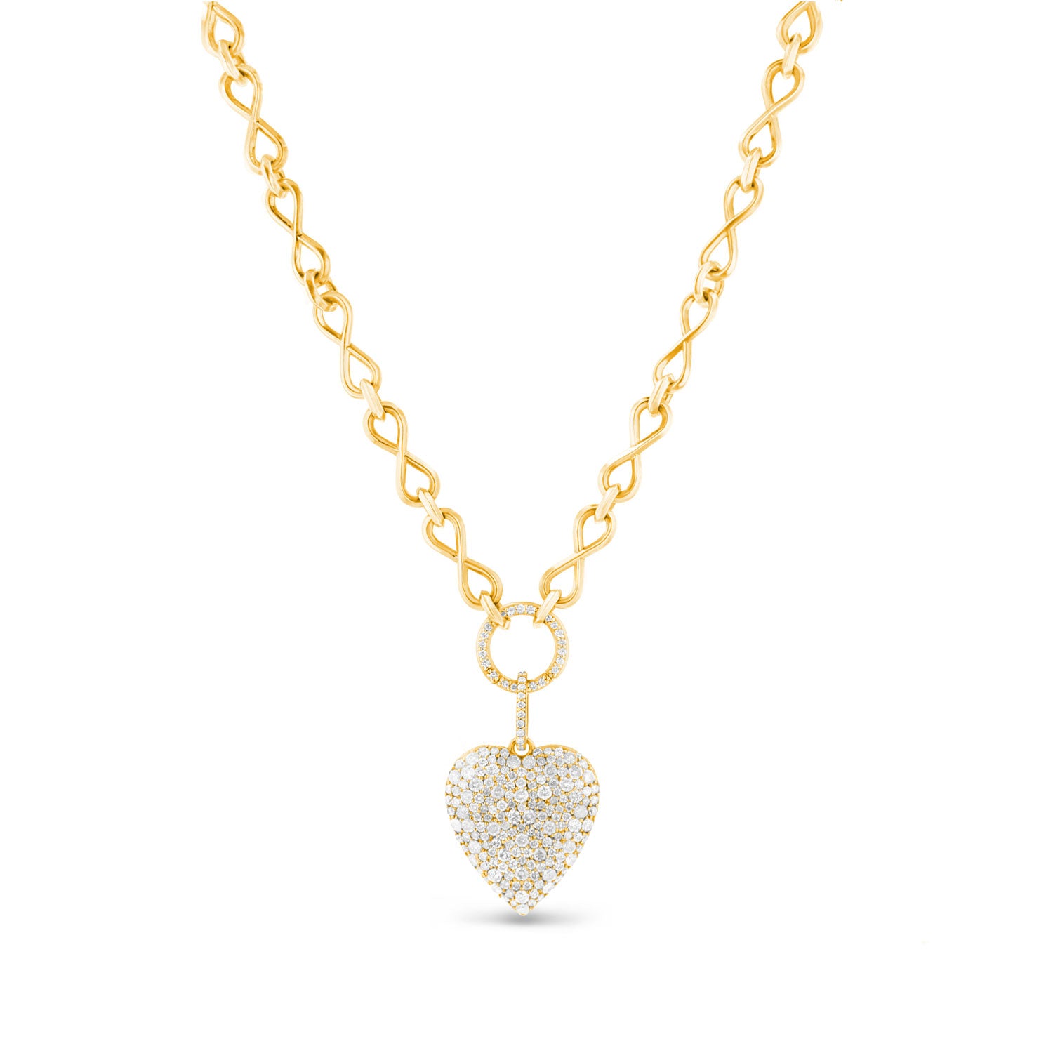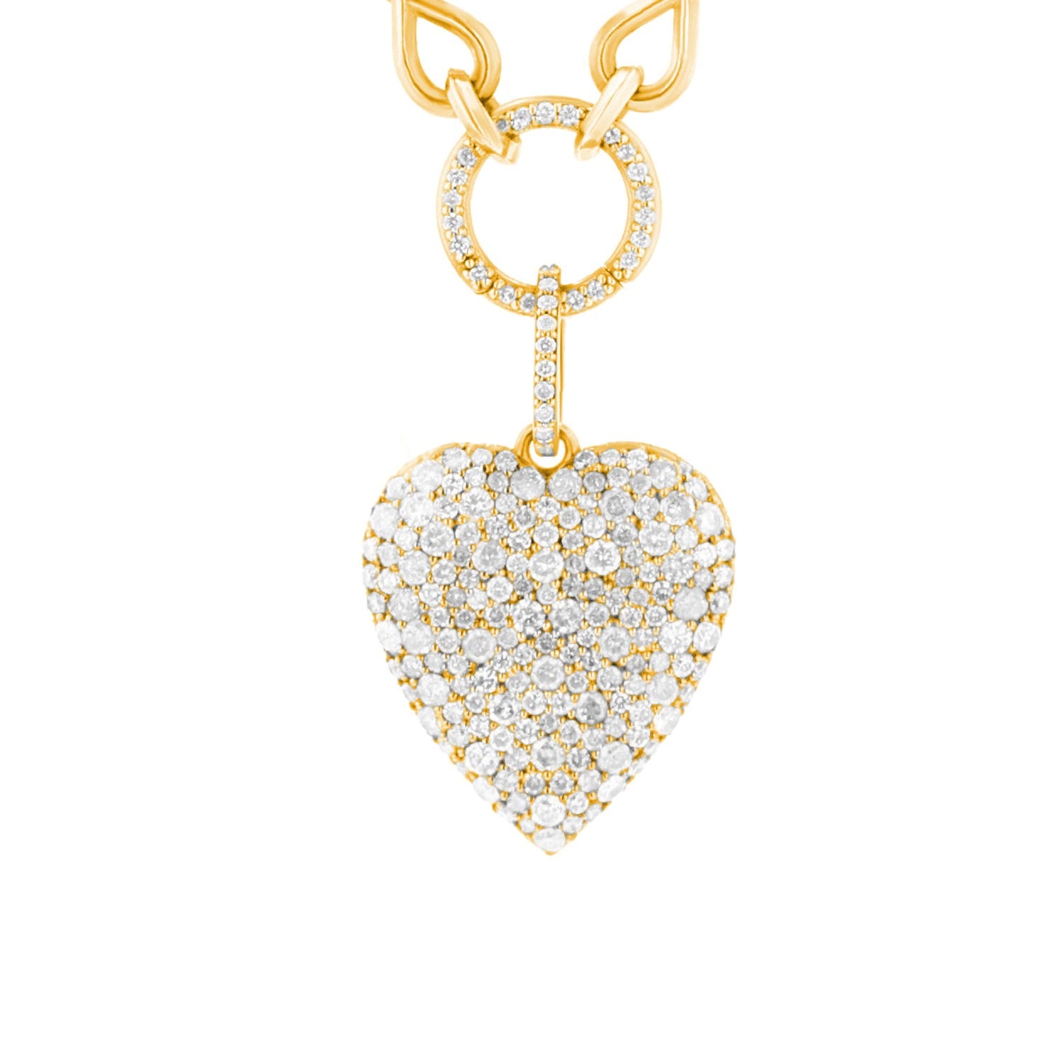 5.45 carat diamond cobblestone puffy heart 14k pendant with a diamond halo. Pictured on a 14k gold infinity chain. Sold as a pendant only.