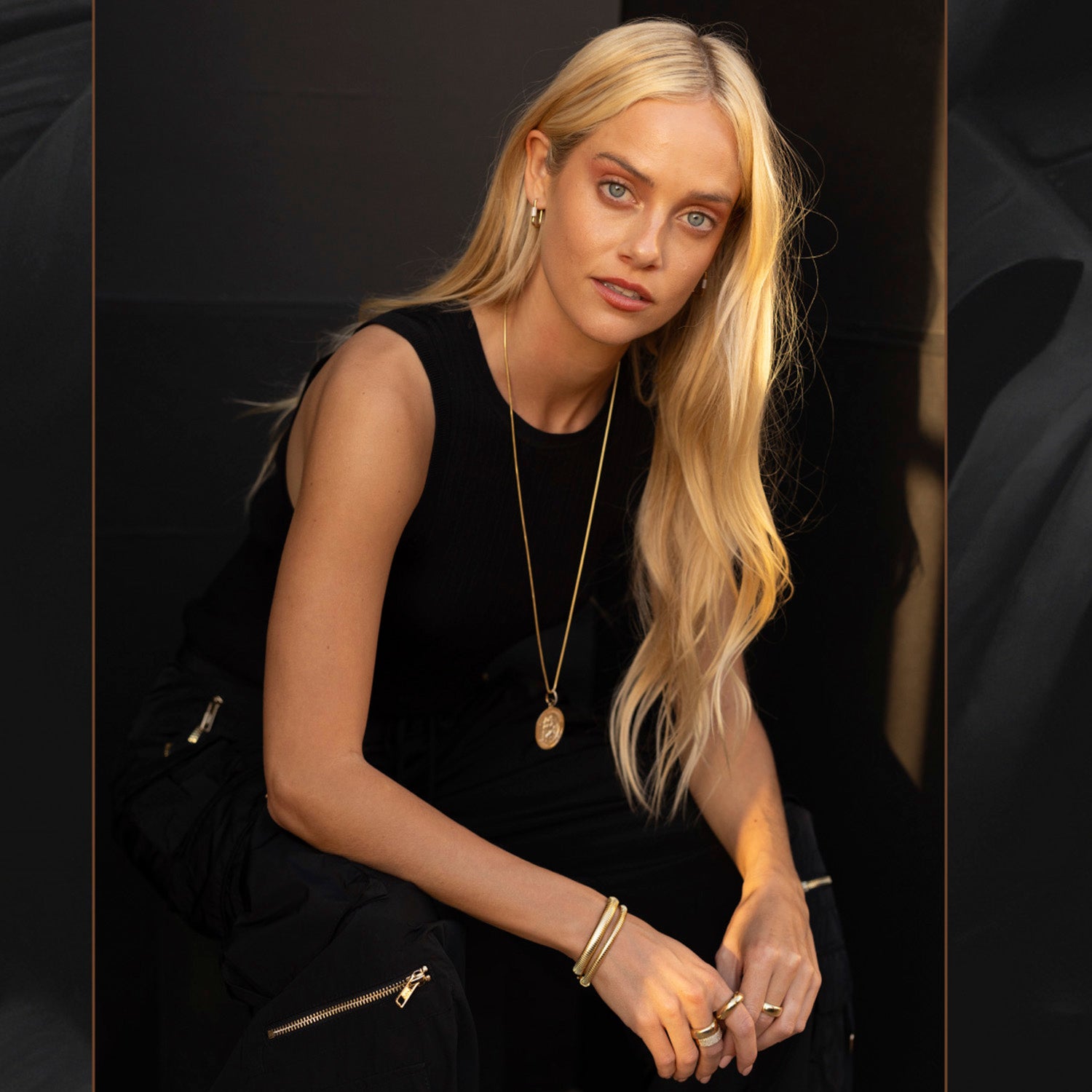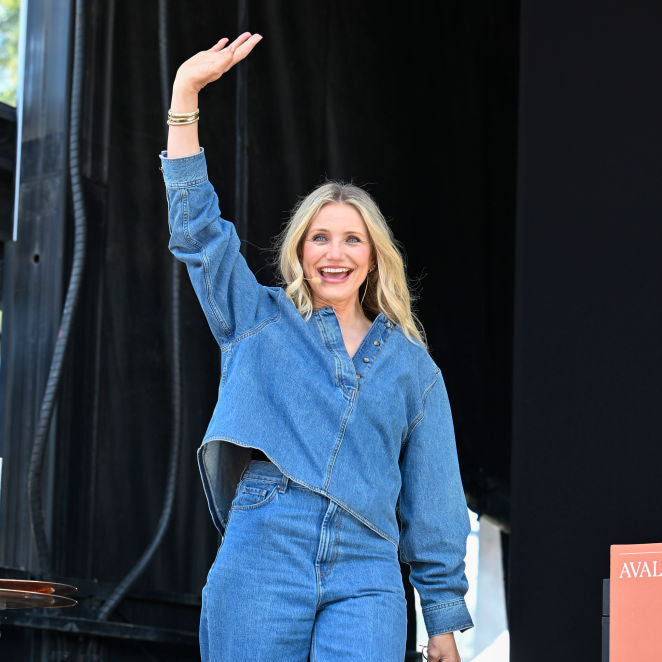 Cameron Diaz pairs her Skinny Gold Tubogas bracelet with her Chunky Gold Tubogas bracelet at the Bottle Rock Festival.