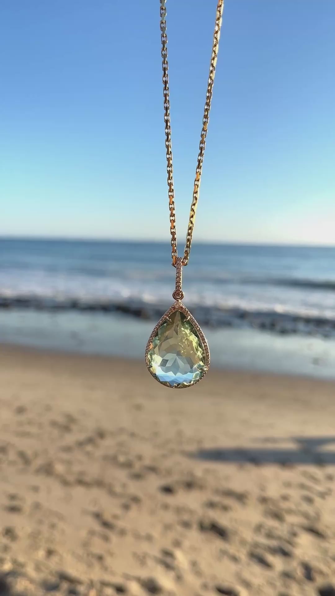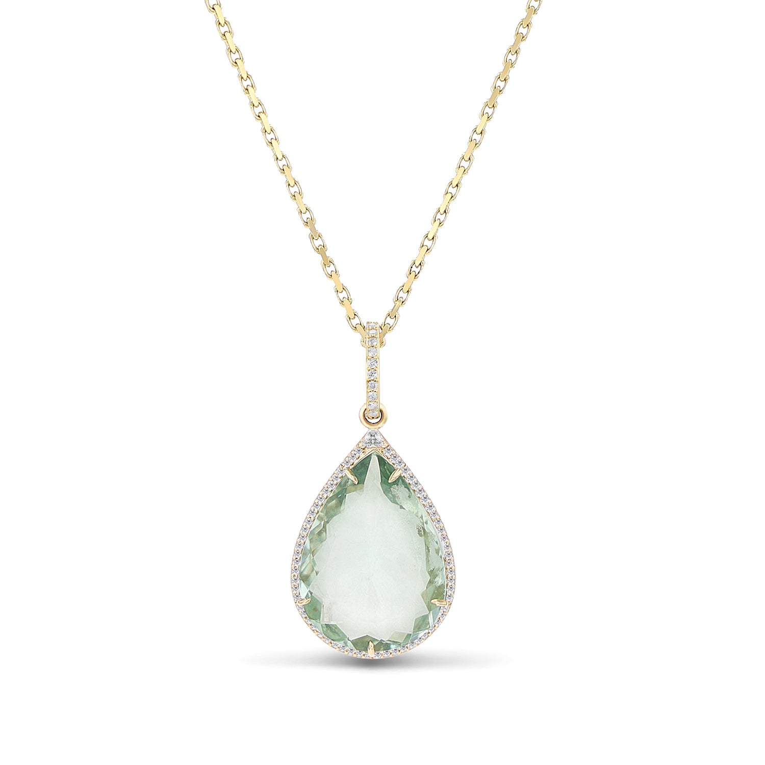 14k Green Amethyst & Diamond Teardrop Pendant on Forzentina Chain Necklace - One of a Kind