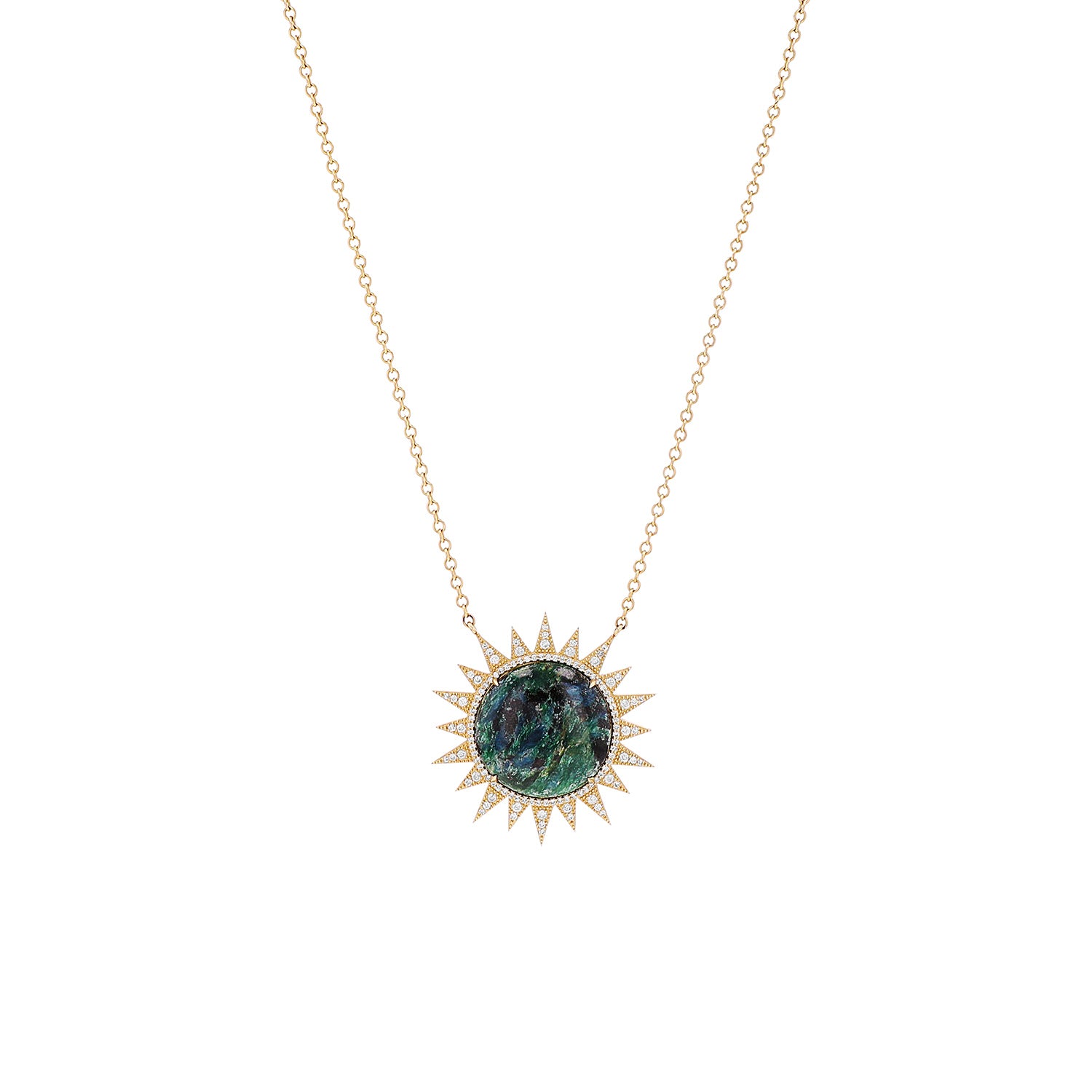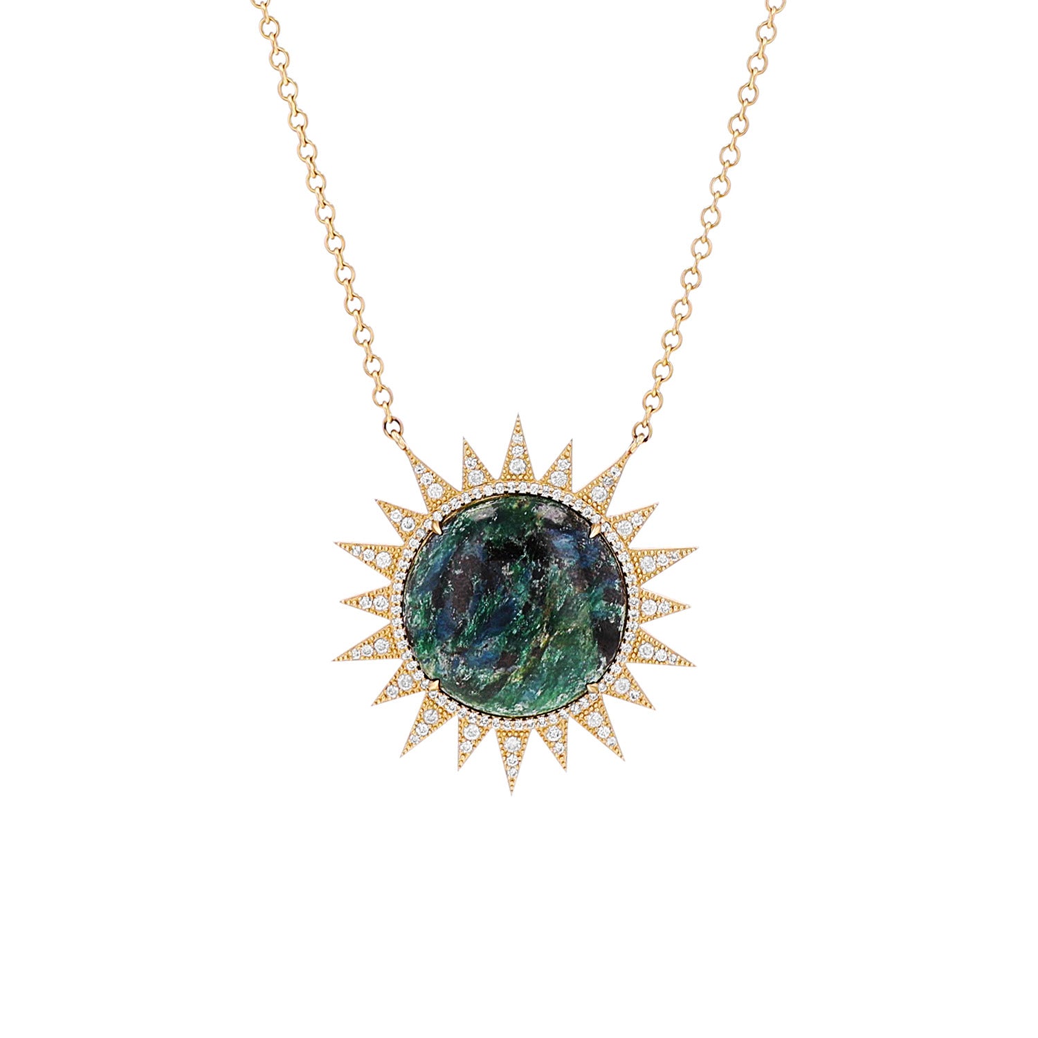 14k Green Mica & Diamond Sun Pendant on Cable Chain - One of a Kind