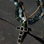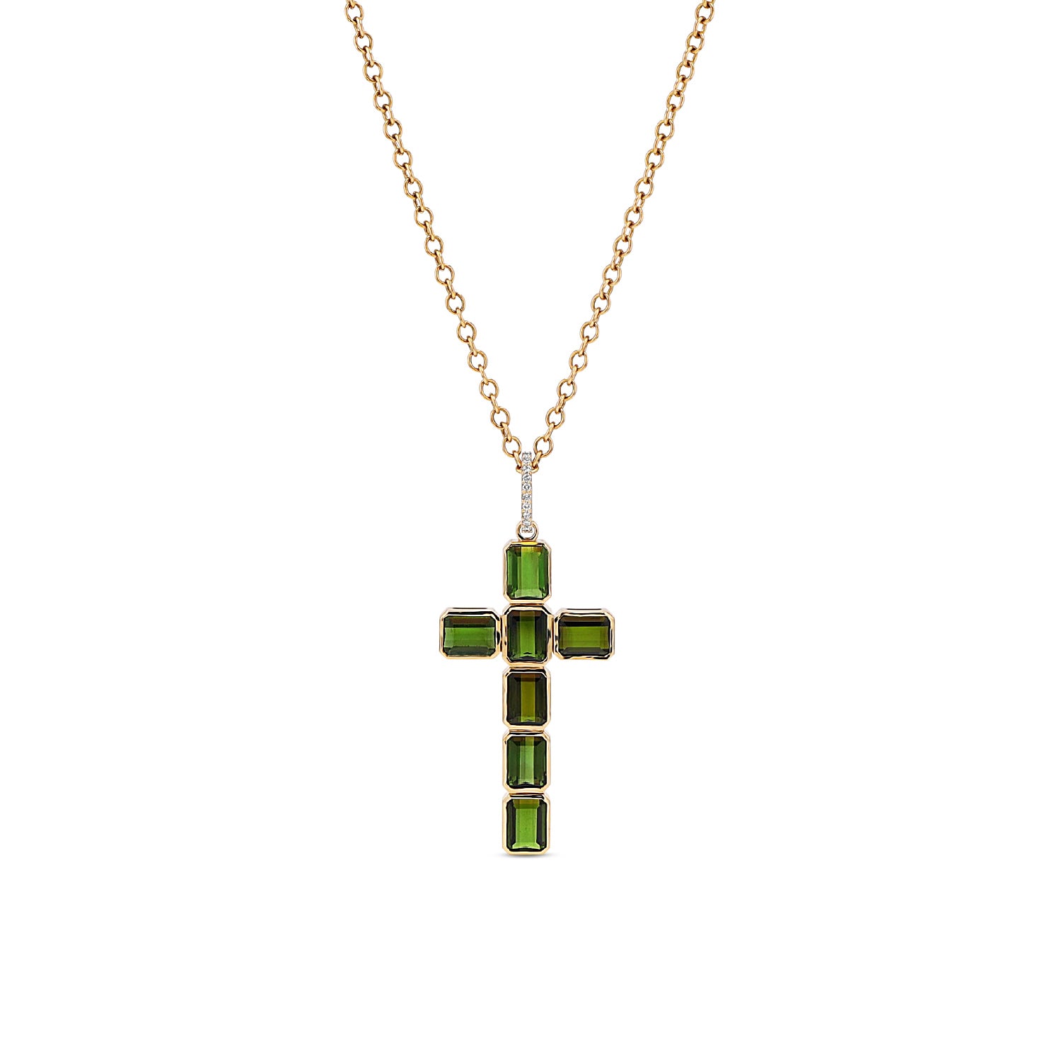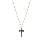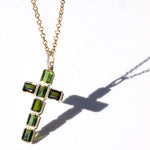 14k Green Tourmaline Bezel Set Cross Pendant on Cable Chain - One of a Kind