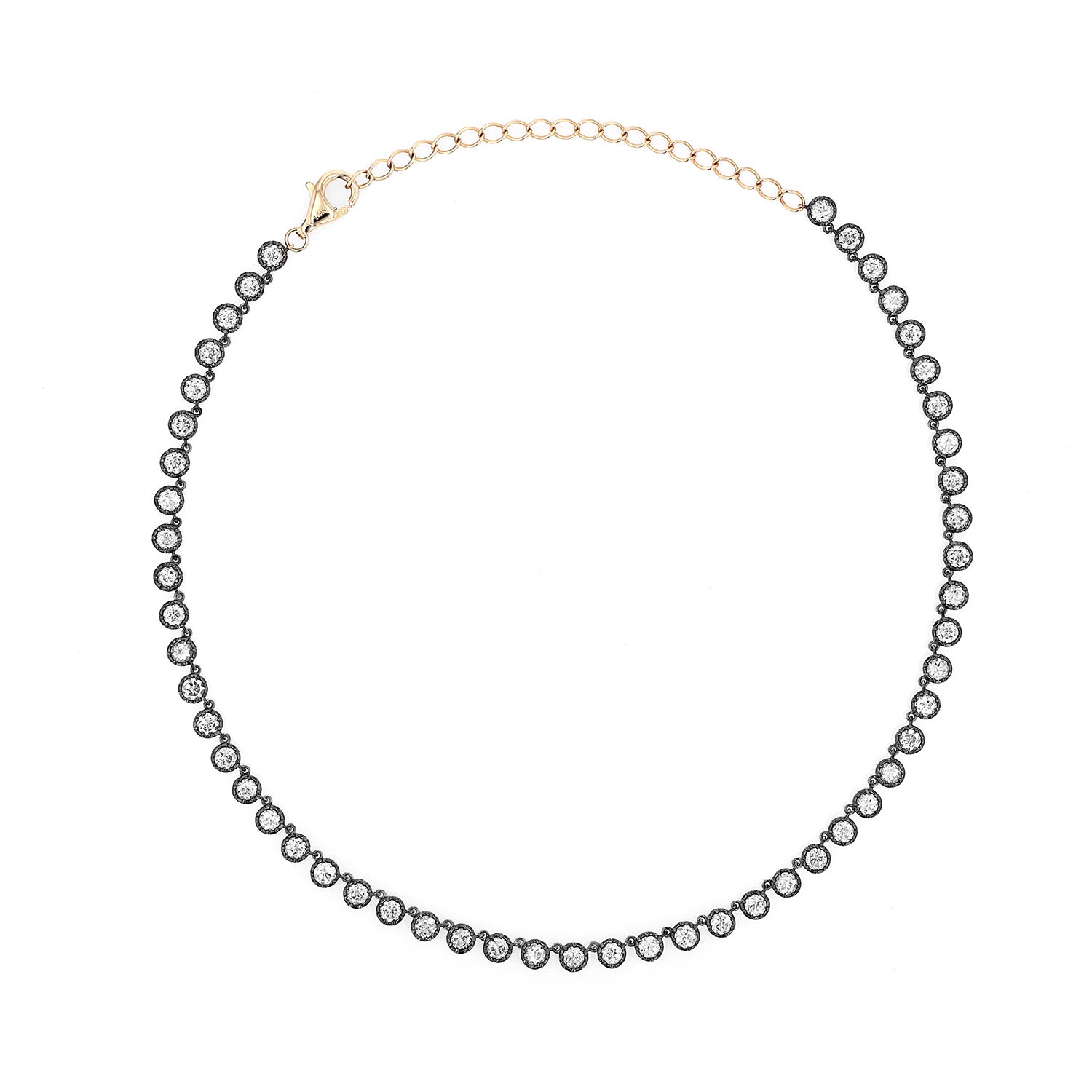 14k Heirloom Diamond and Black Rhodium Tennis Necklace - 16"
