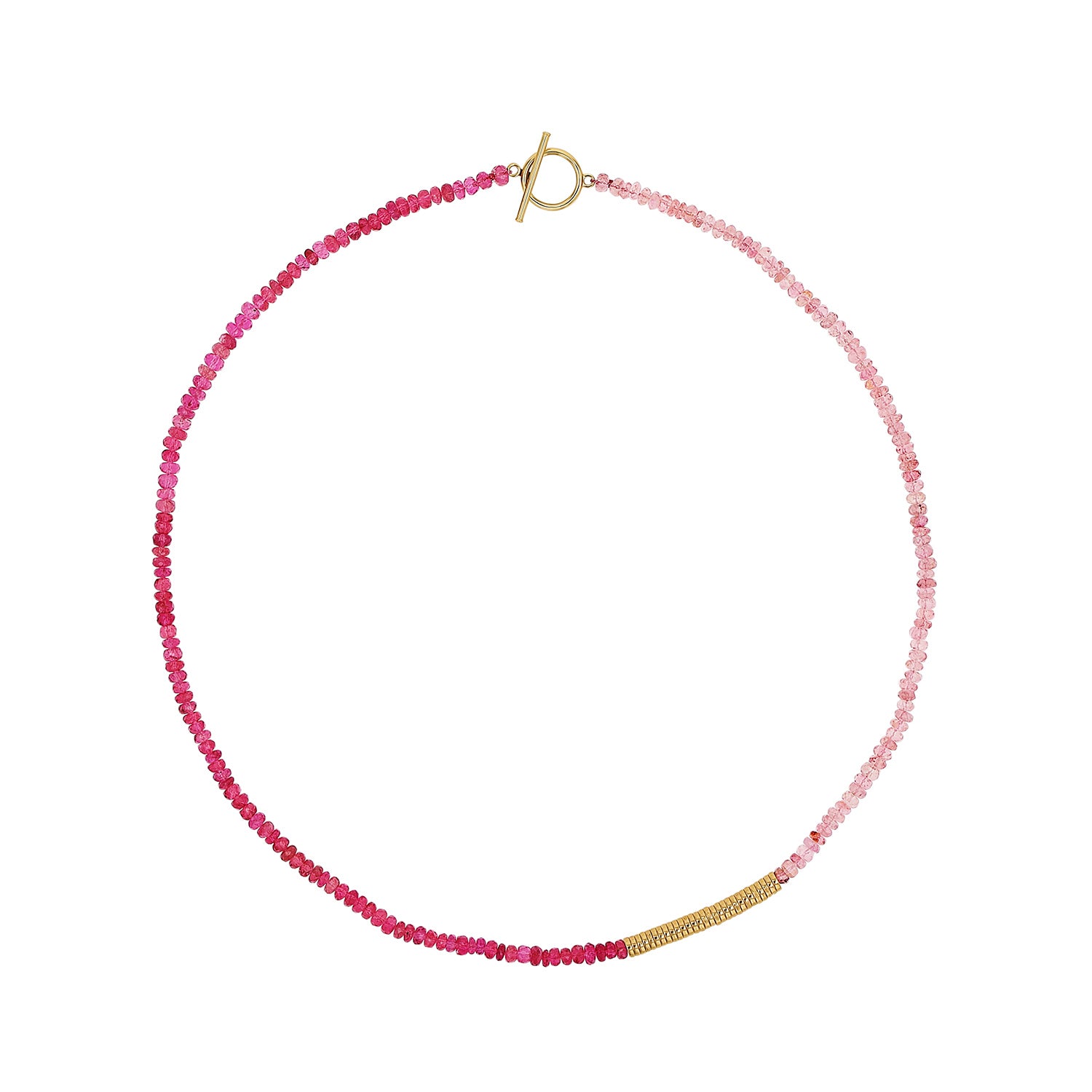 14k Light & Dark Pink Tourmaline Strung Necklace with 14k Spacer Beads - 18"