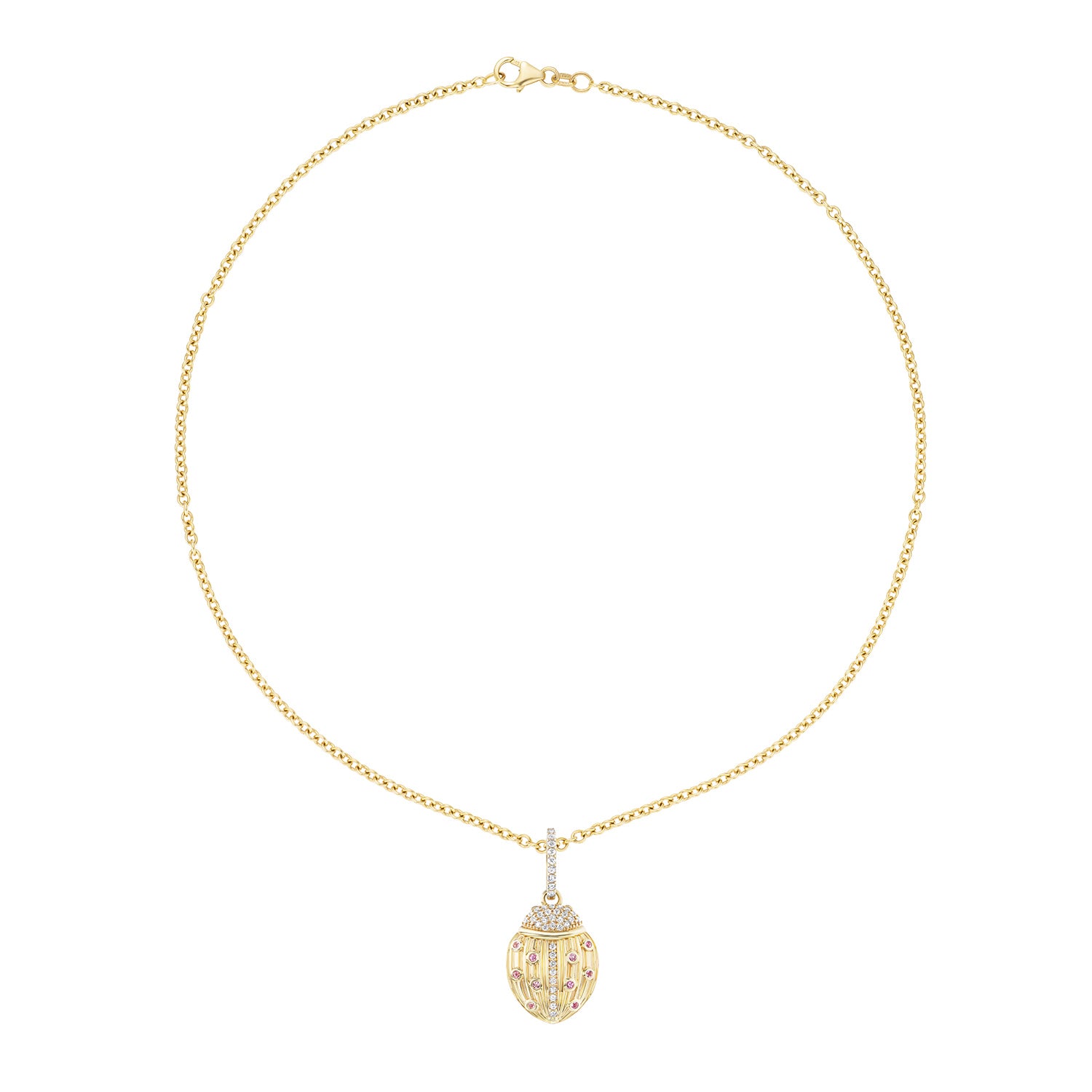 14k Love Bug with Pink Tourmaline & Diamond Pendant on Cable Chain Necklace - 18"