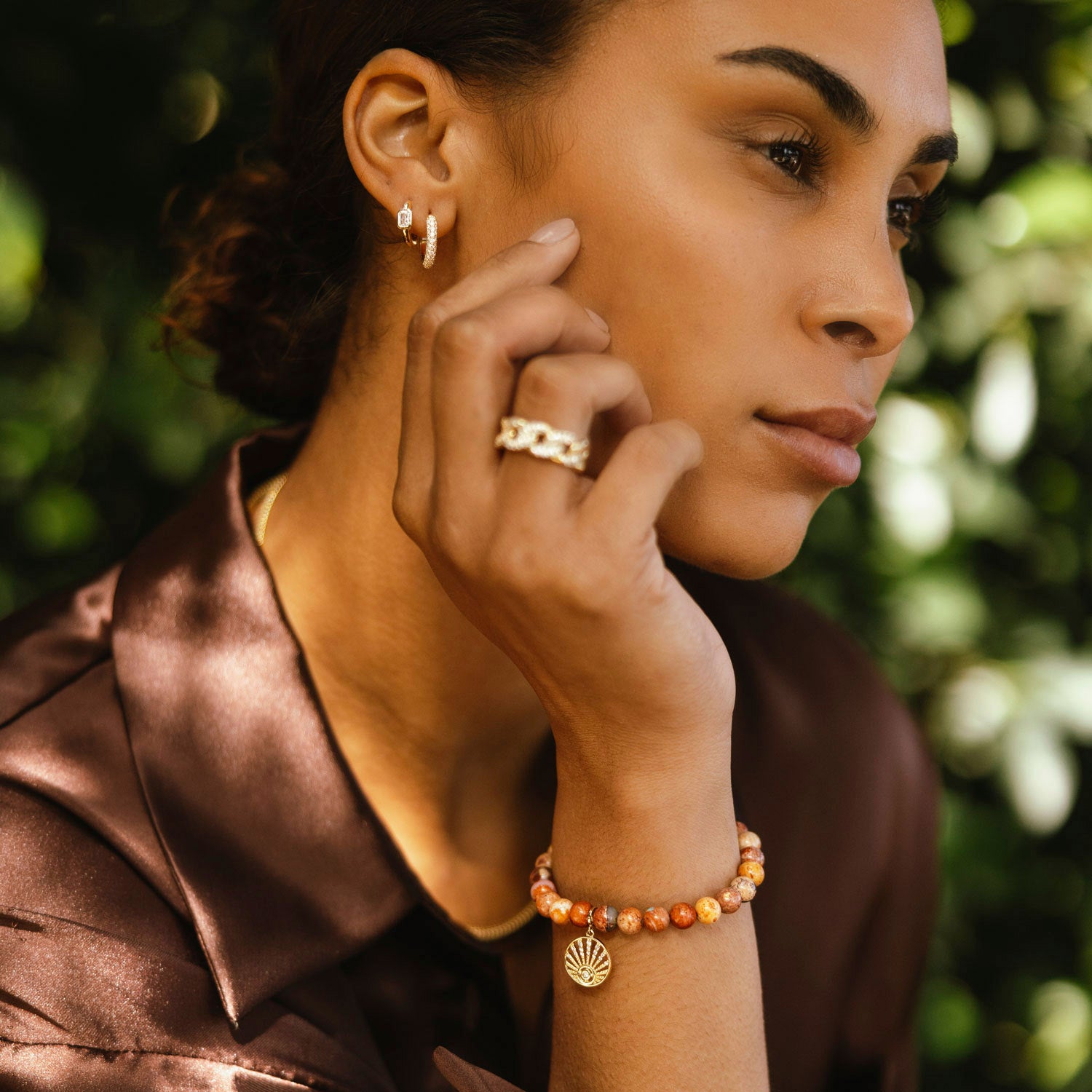 14k Mexican Fire Opal Bracelet with Diamond Sunrise Charm