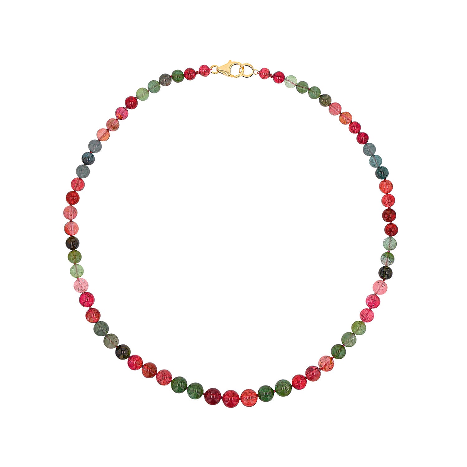 14k Mix Tourmaline Graduated Round Knotted Necklace - One of a Kind