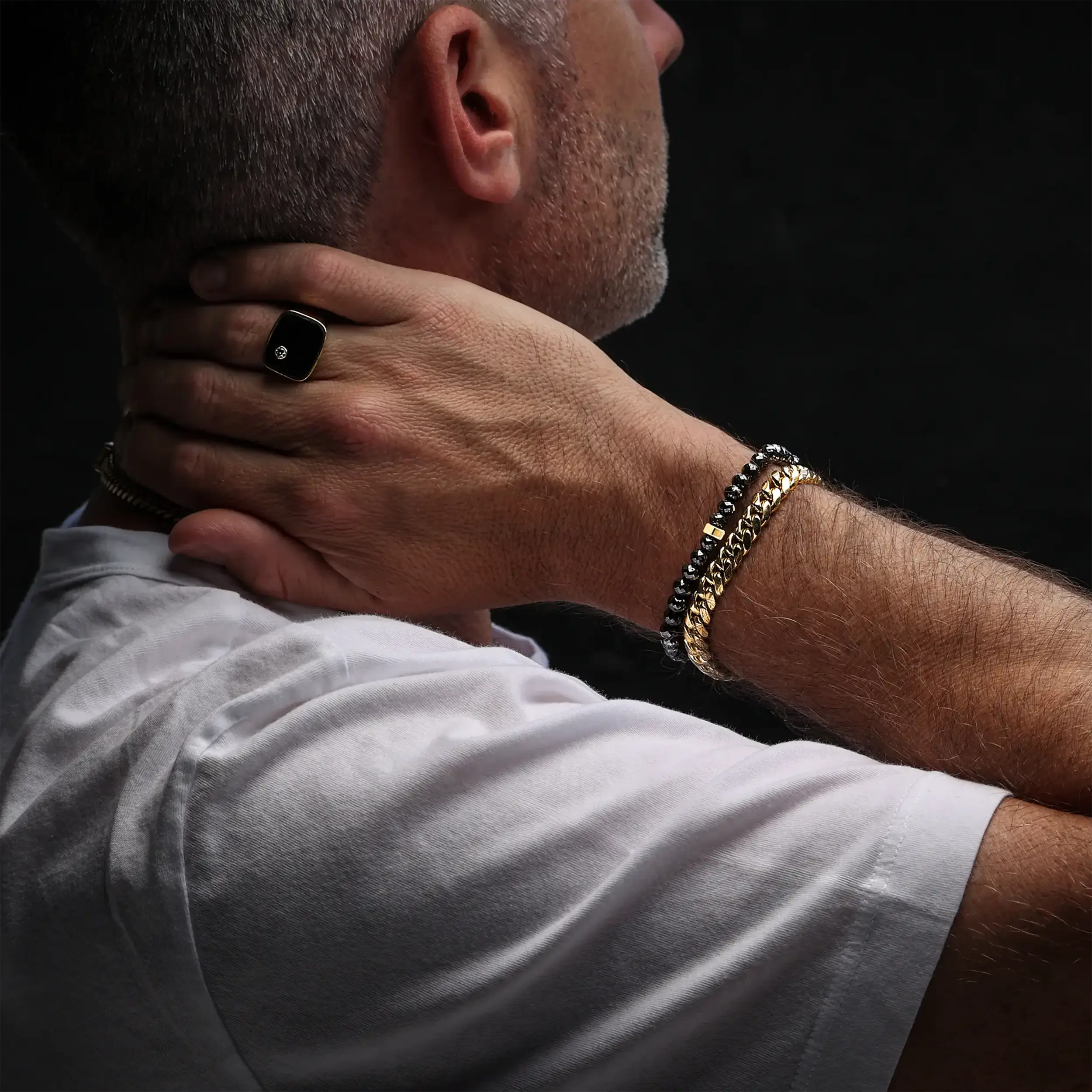 Men's Mr. LOWE Raw Black Diamond Tennis Bracelet with 14k Gold Rondelle