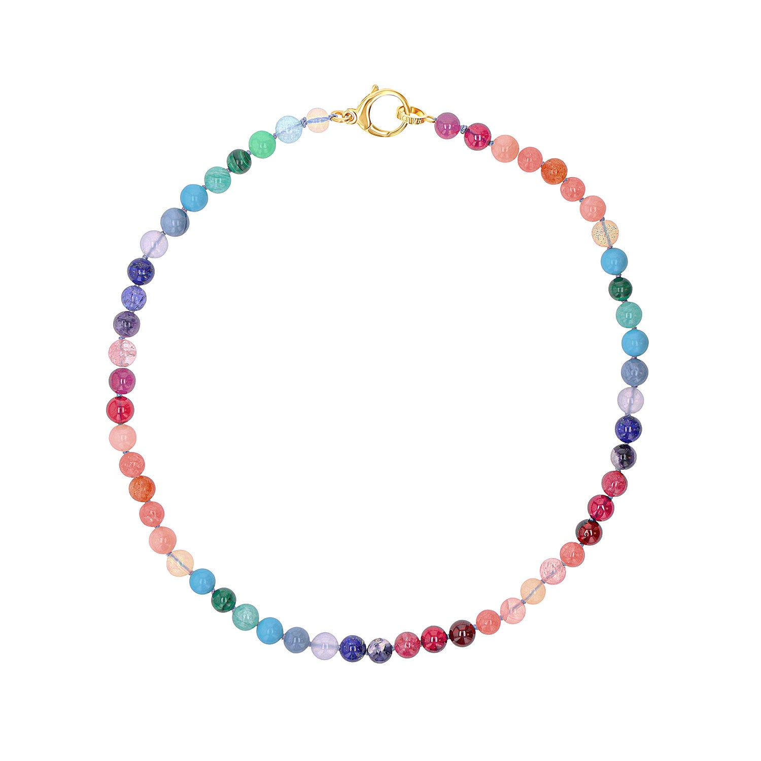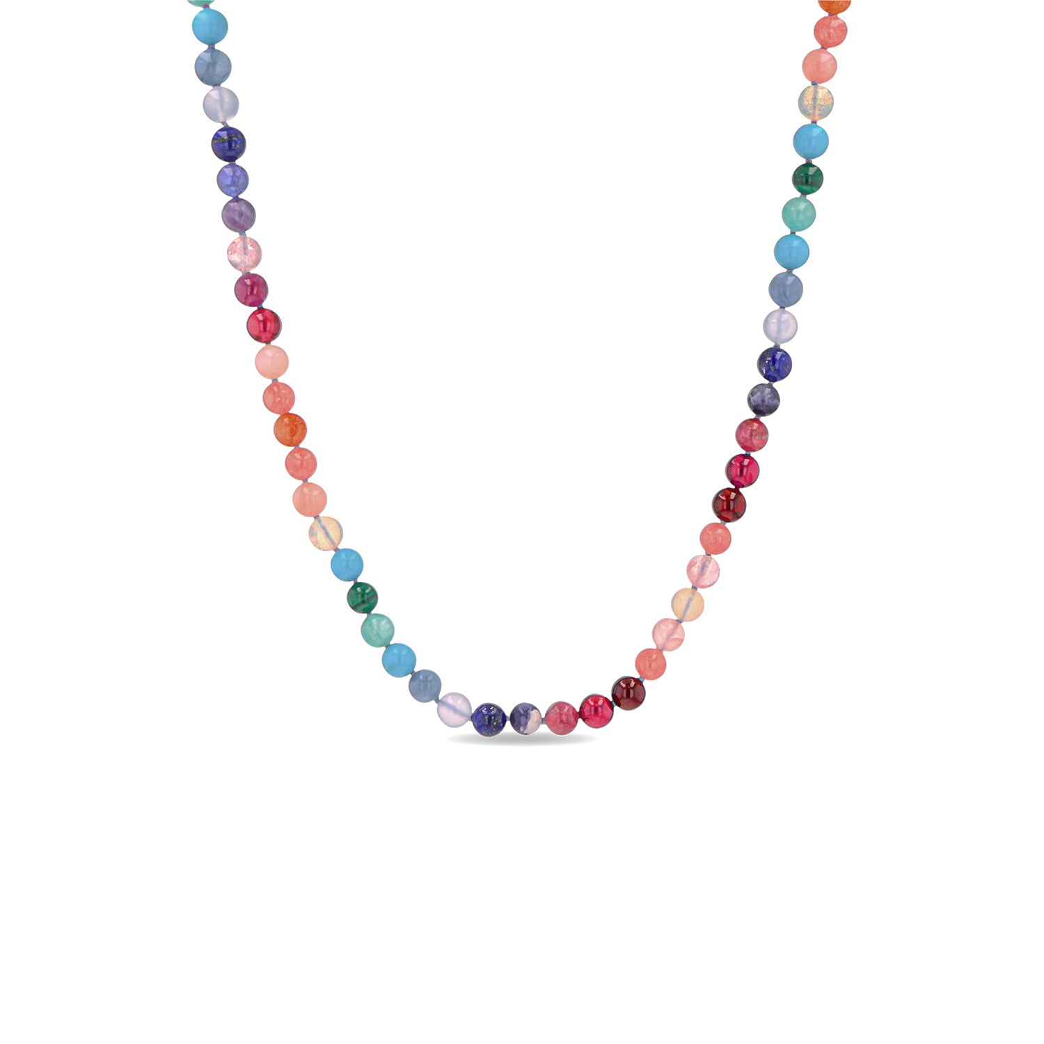 14k Multi Color Gemstone Graduated Knotted Necklace - 17"