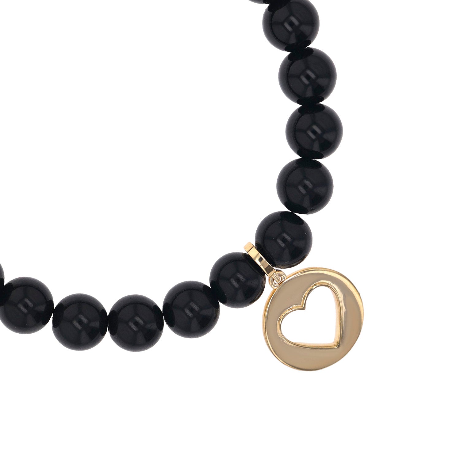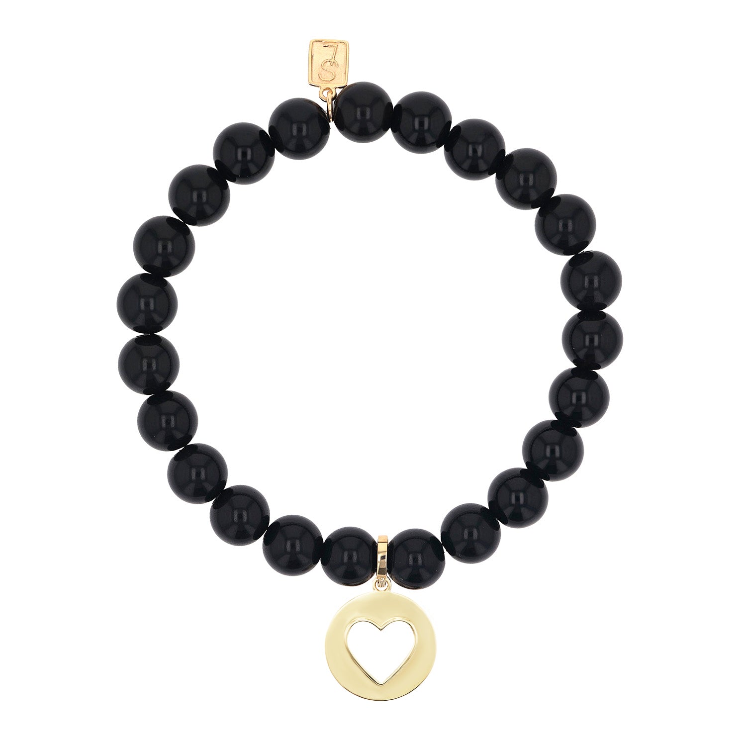 14k Onyx Bracelet with Open Heart Charm - 8mm