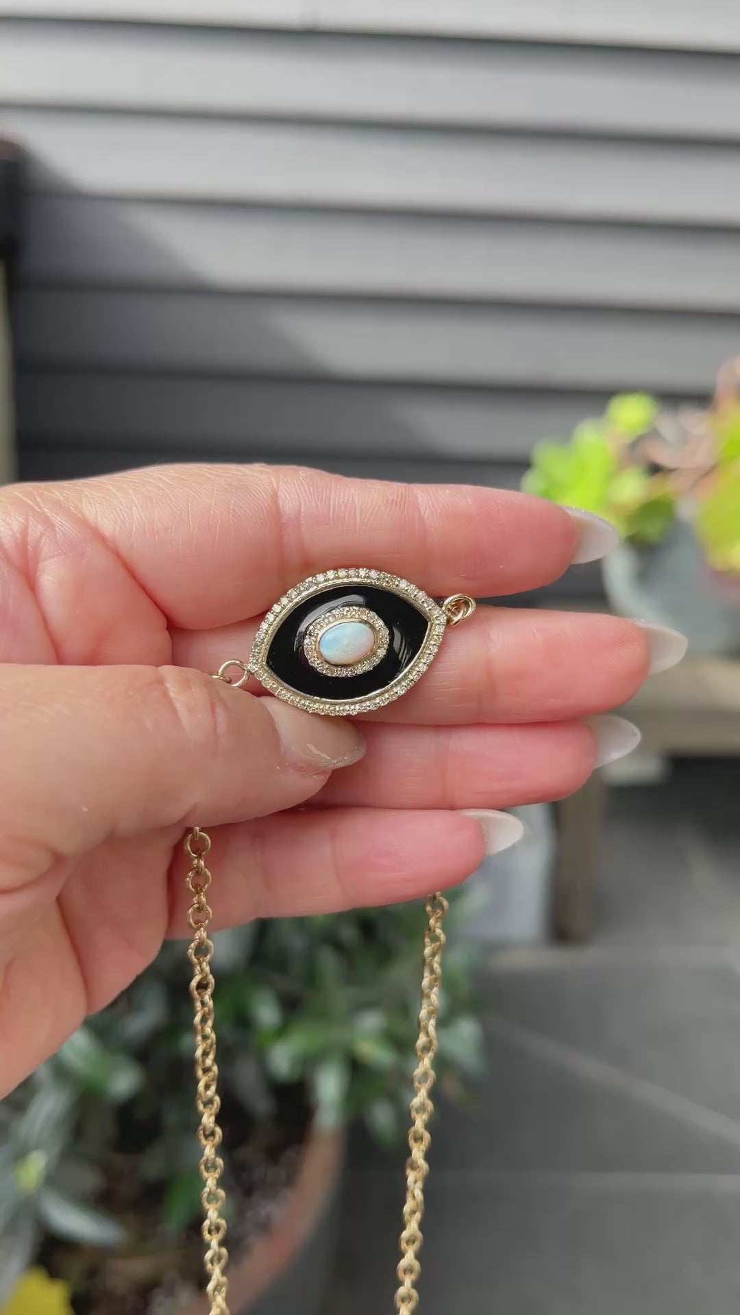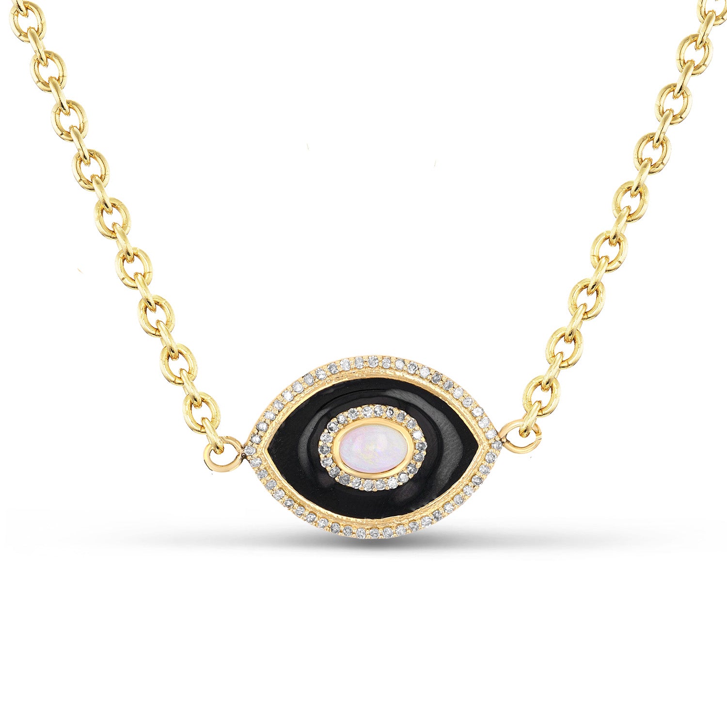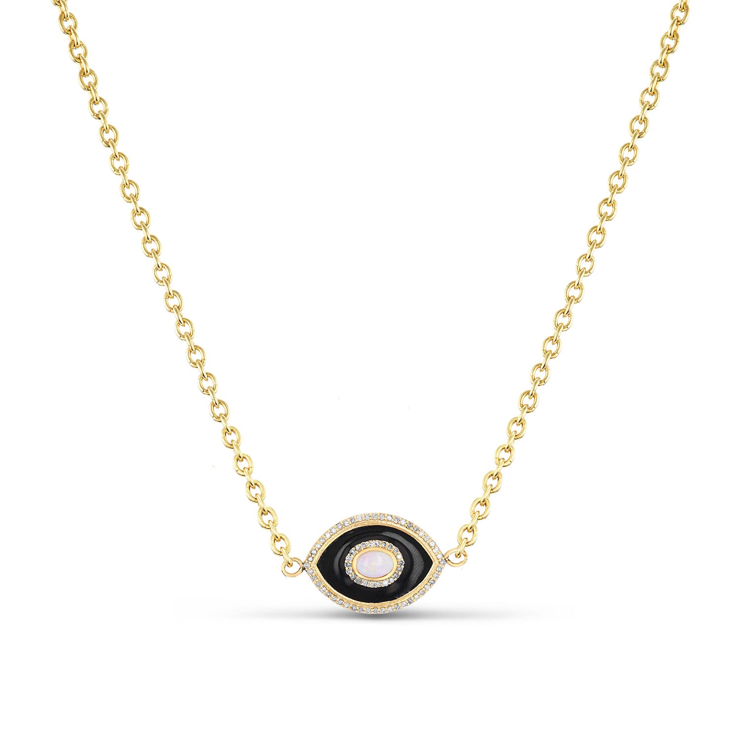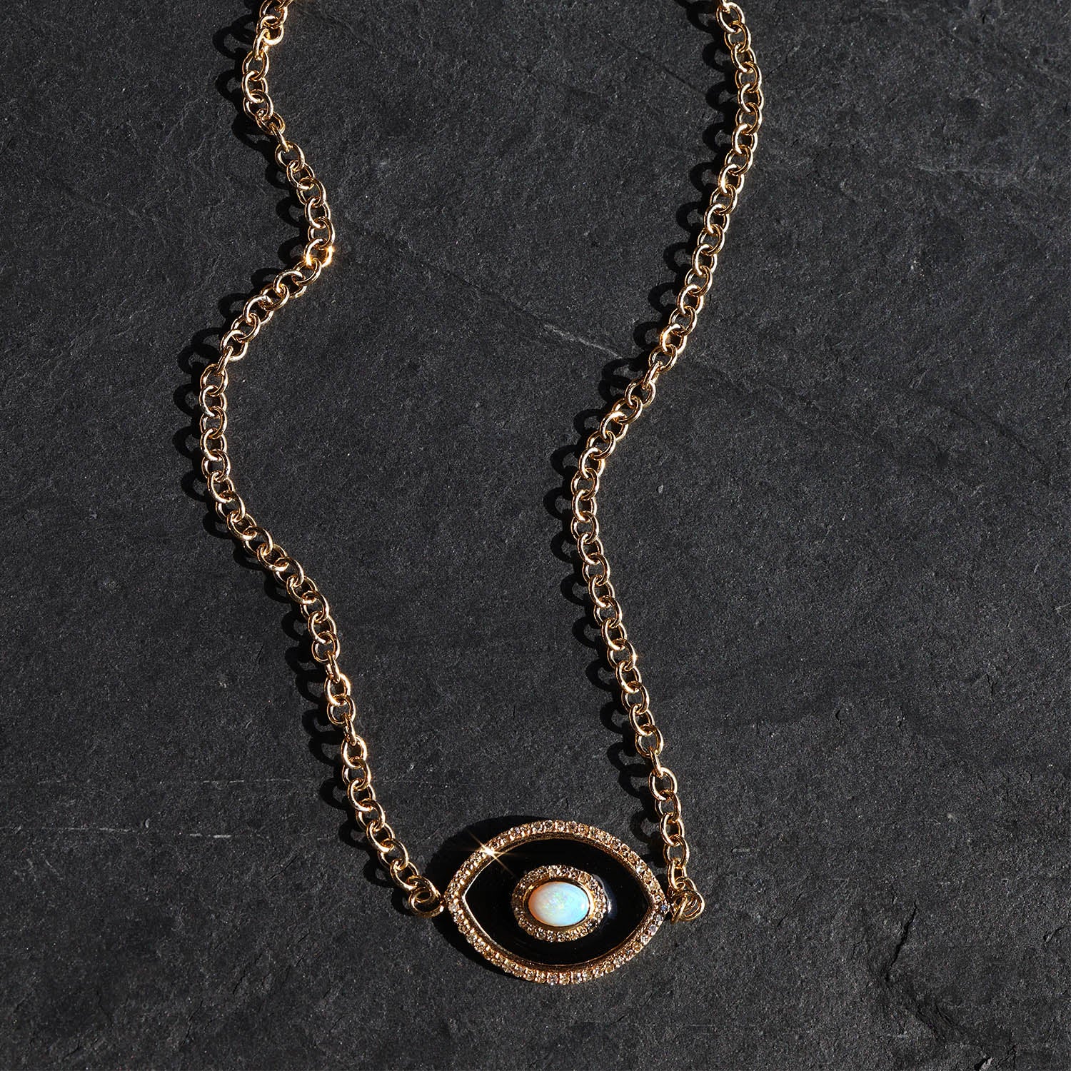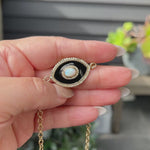 14k Onyx & Ethiopian Opal Evil Eye Pendant on Cable Chain Necklace - One of a Kind